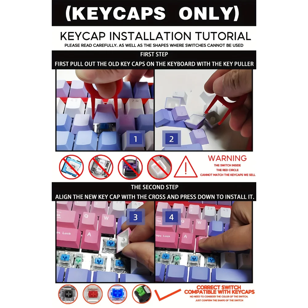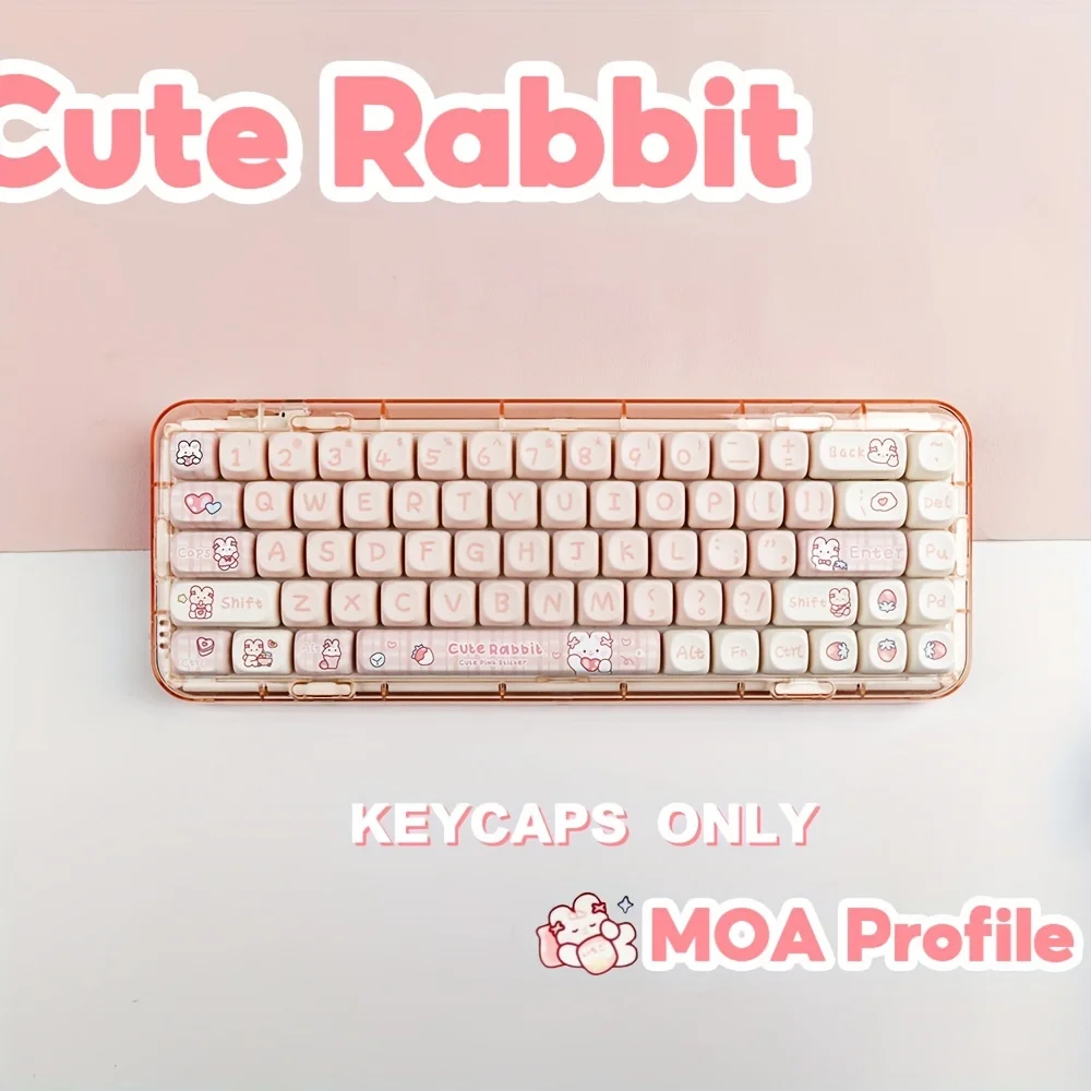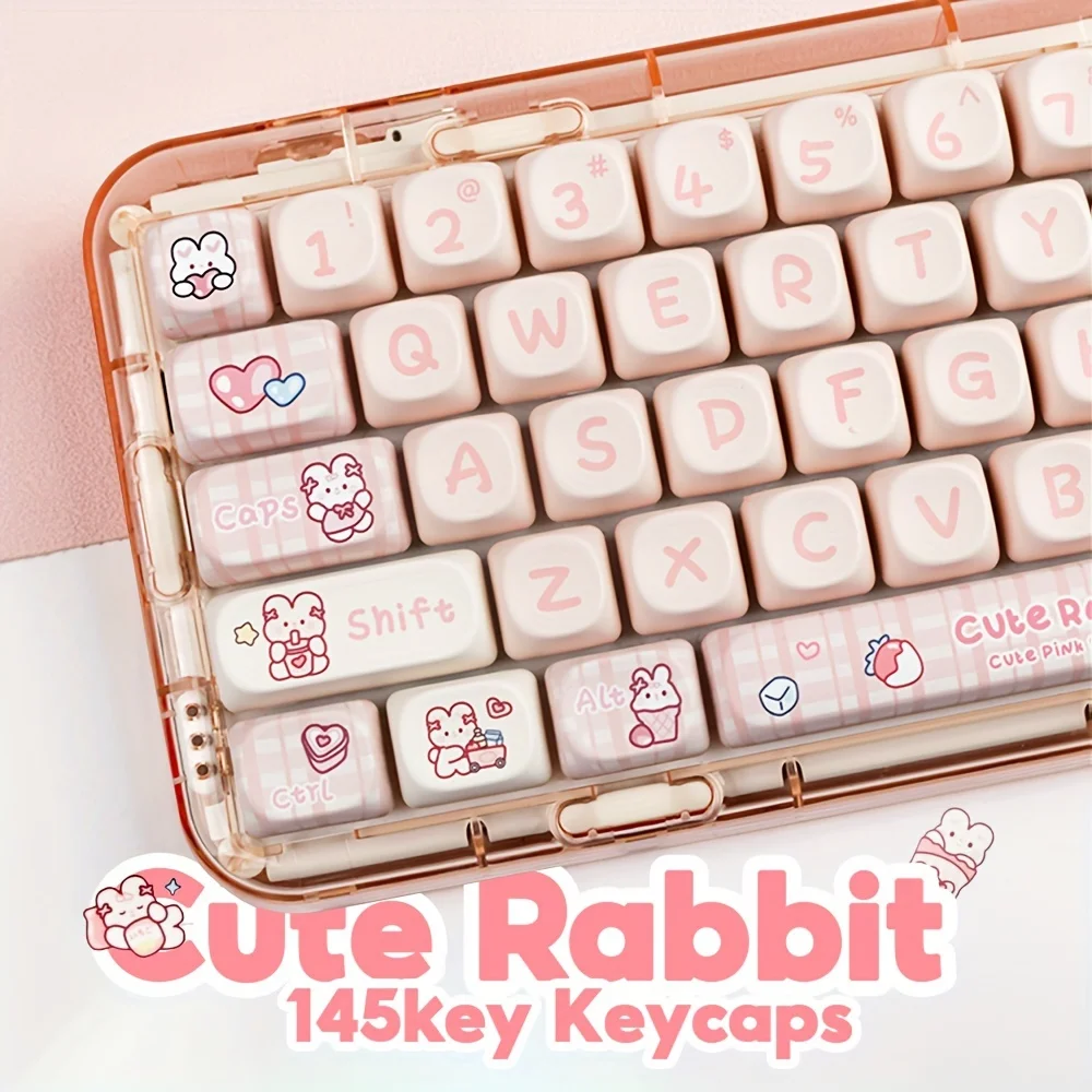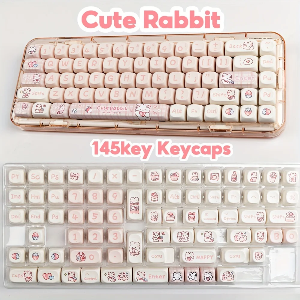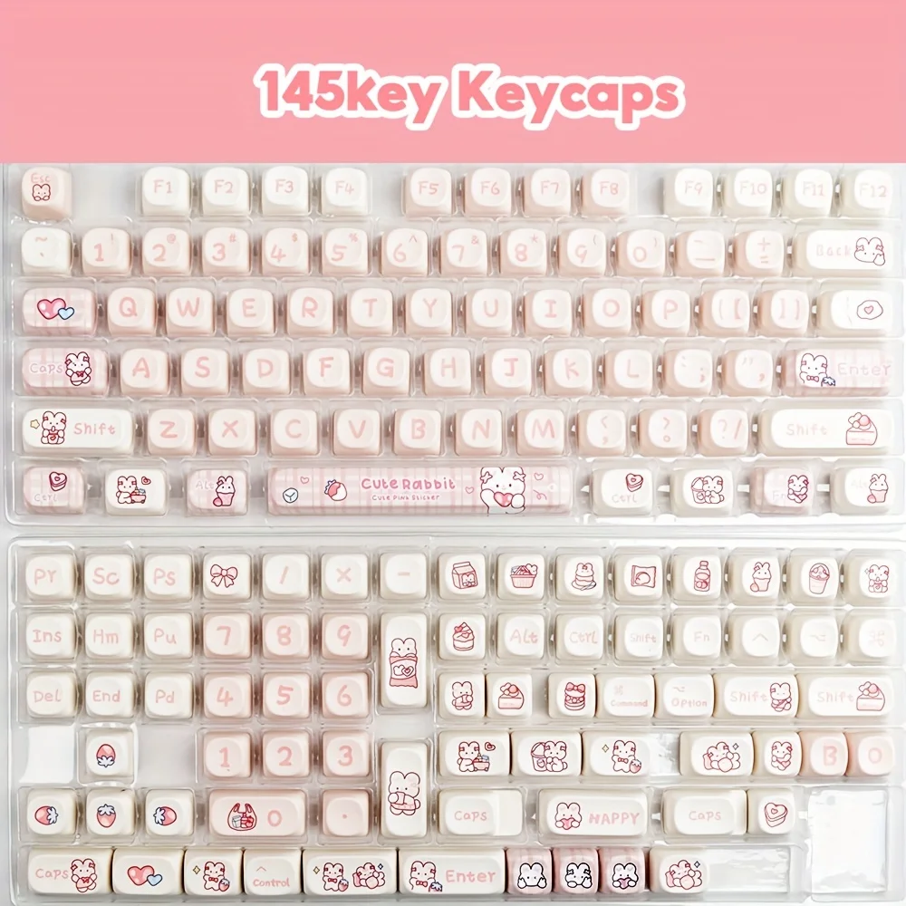 Comprar Teclas PBT con tema de conejito lindo, 145 teclas, teclas estilo dibujos animados compatibles con MOA 61/87/96/104/108 teclados mecánicos MX Switch
