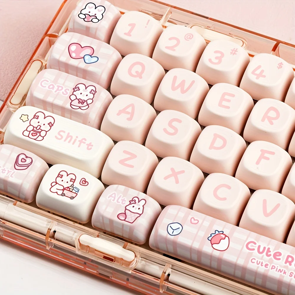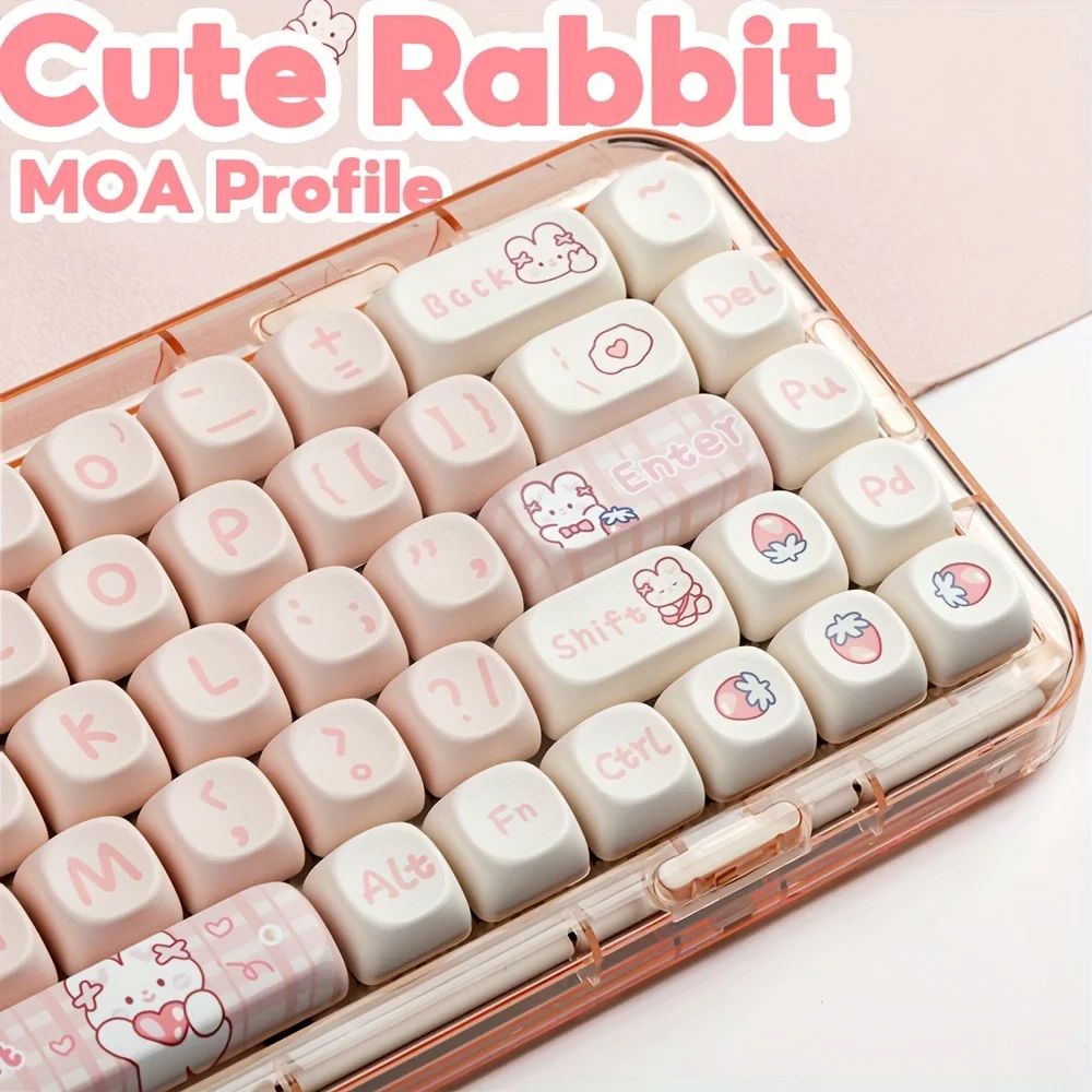 Comprar Teclas PBT con tema de conejito lindo, 145 teclas, teclas estilo dibujos animados compatibles con MOA 61/87/96/104/108 teclados mecánicos MX Switch