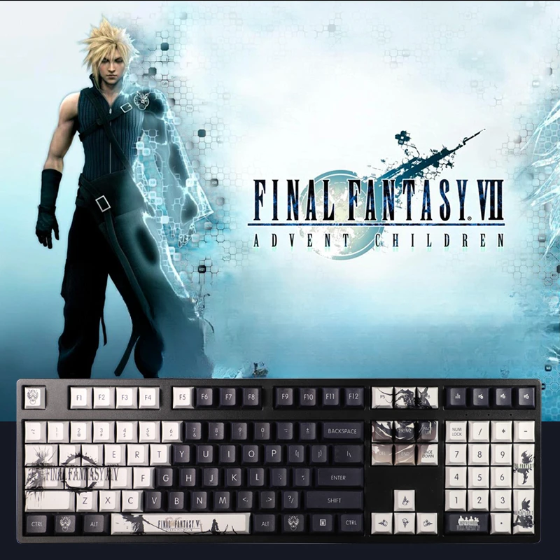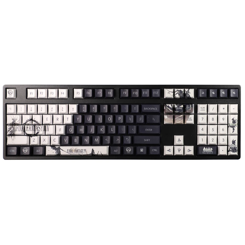 Tecla PBT temática Final Fantasy temática de Anime FF14 Teclado mecánico minimalista negro Perfil de cereza 108 teclas Teclas de AnimeDescribir