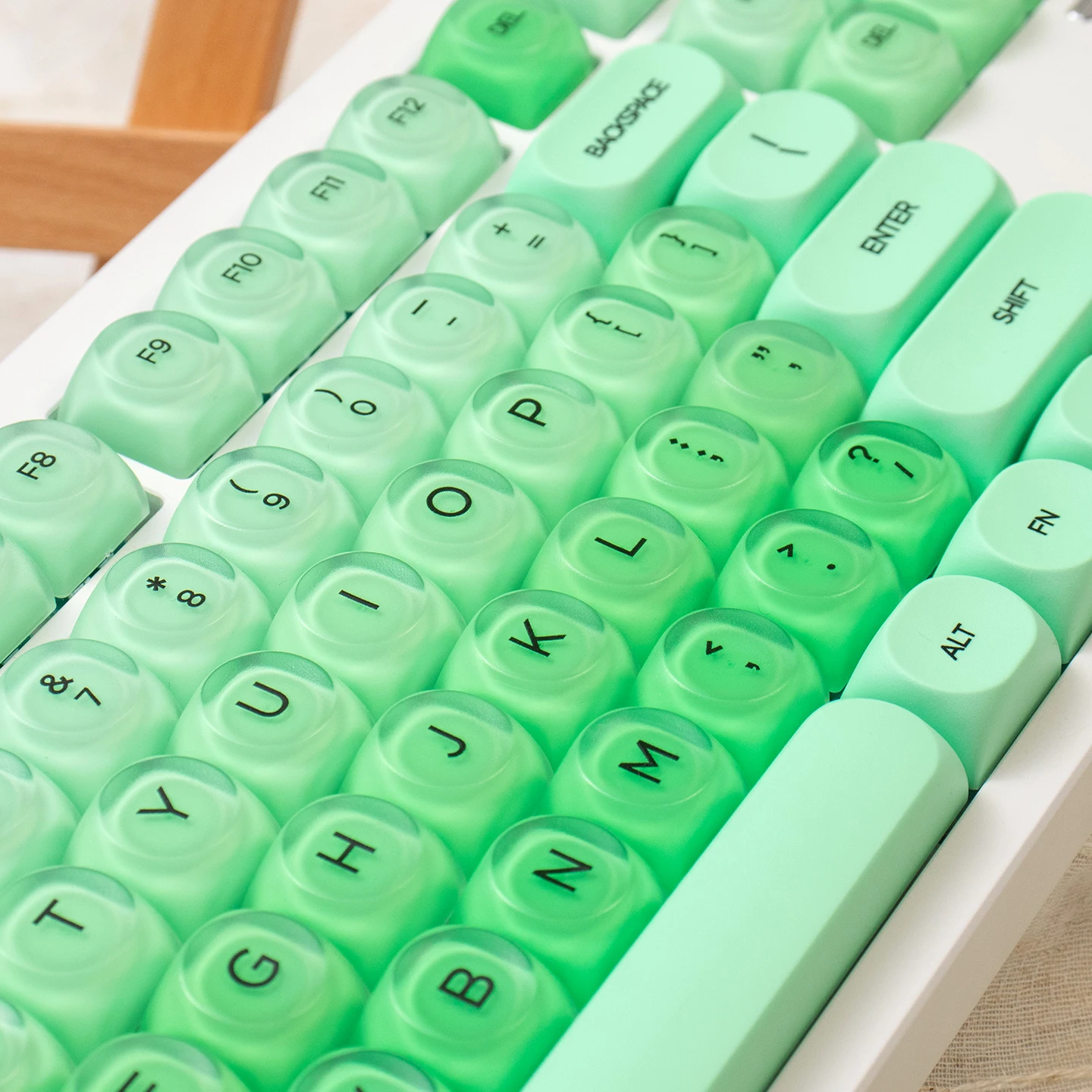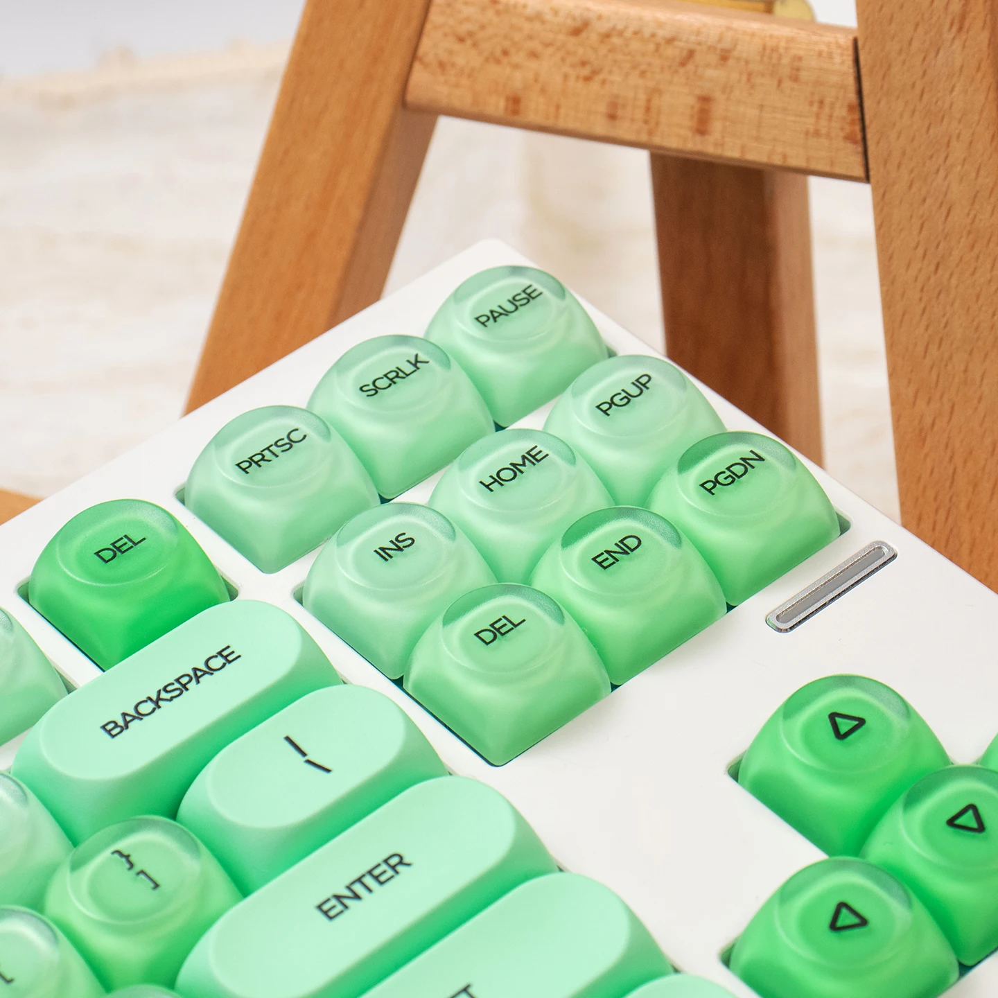 Teclas de PC semitransparentes personalizadas de nube verde, 132 teclas, perfil HOA, teclas PBT de doble disparo para interruptores MX, Teclado mecánico