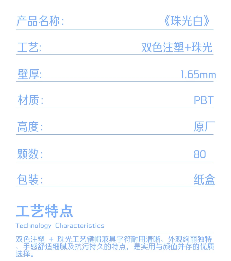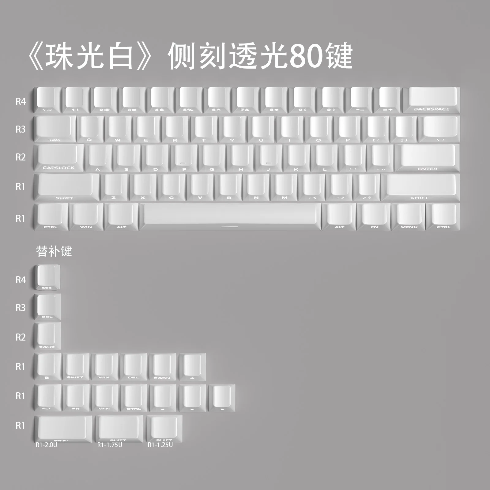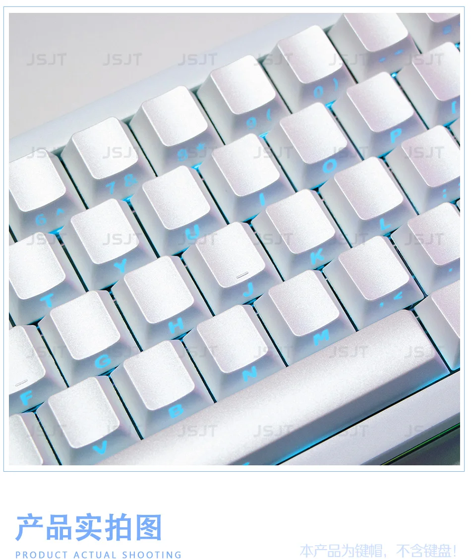 Teclas blancas nacaradas: estas teclas nacaradas producen un efecto nacarado único bajo la luz, con un brillo extremadamente alto.Estas teclas de color blanco nacarado producen diferentes efectos bajo la luz: cuando se ven desde un lado, tienen un efecto esmerilado de alto brillo, mientras que se ven desde el frente, aparecen de color blanco frío.Estas teclas personalizadas no solo se ven hermosas, sino que también hacen que su teclado luzca más sofisticado y elegante.