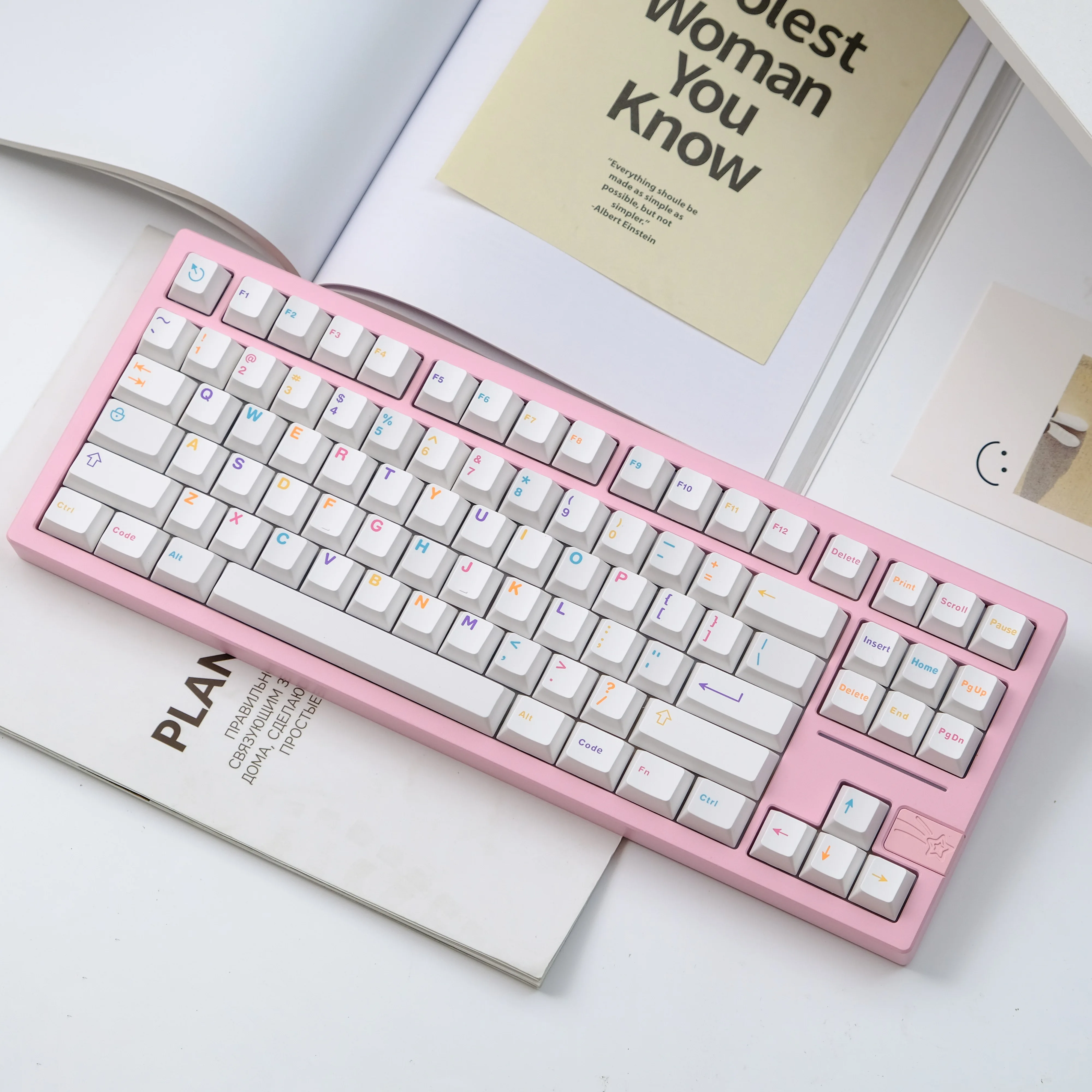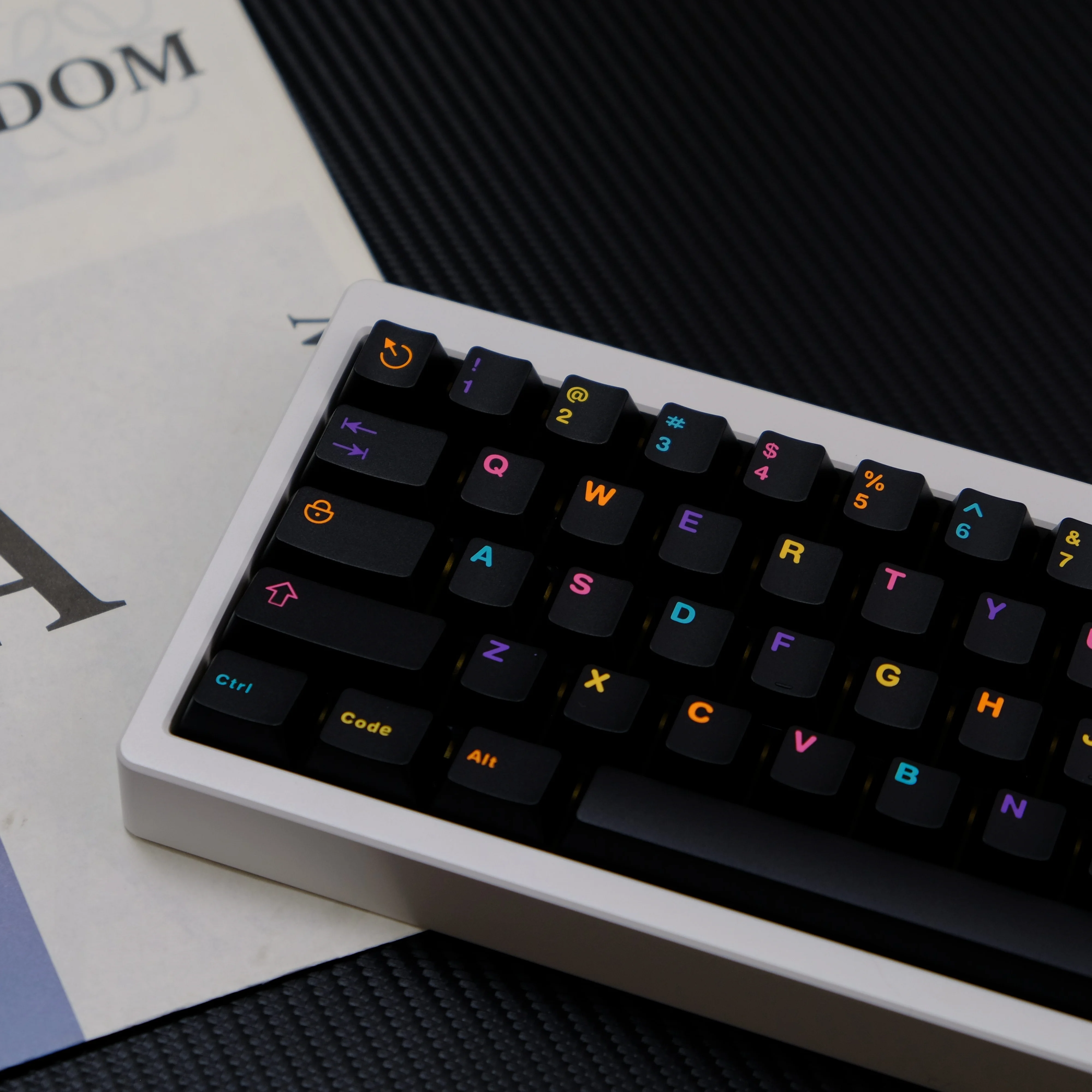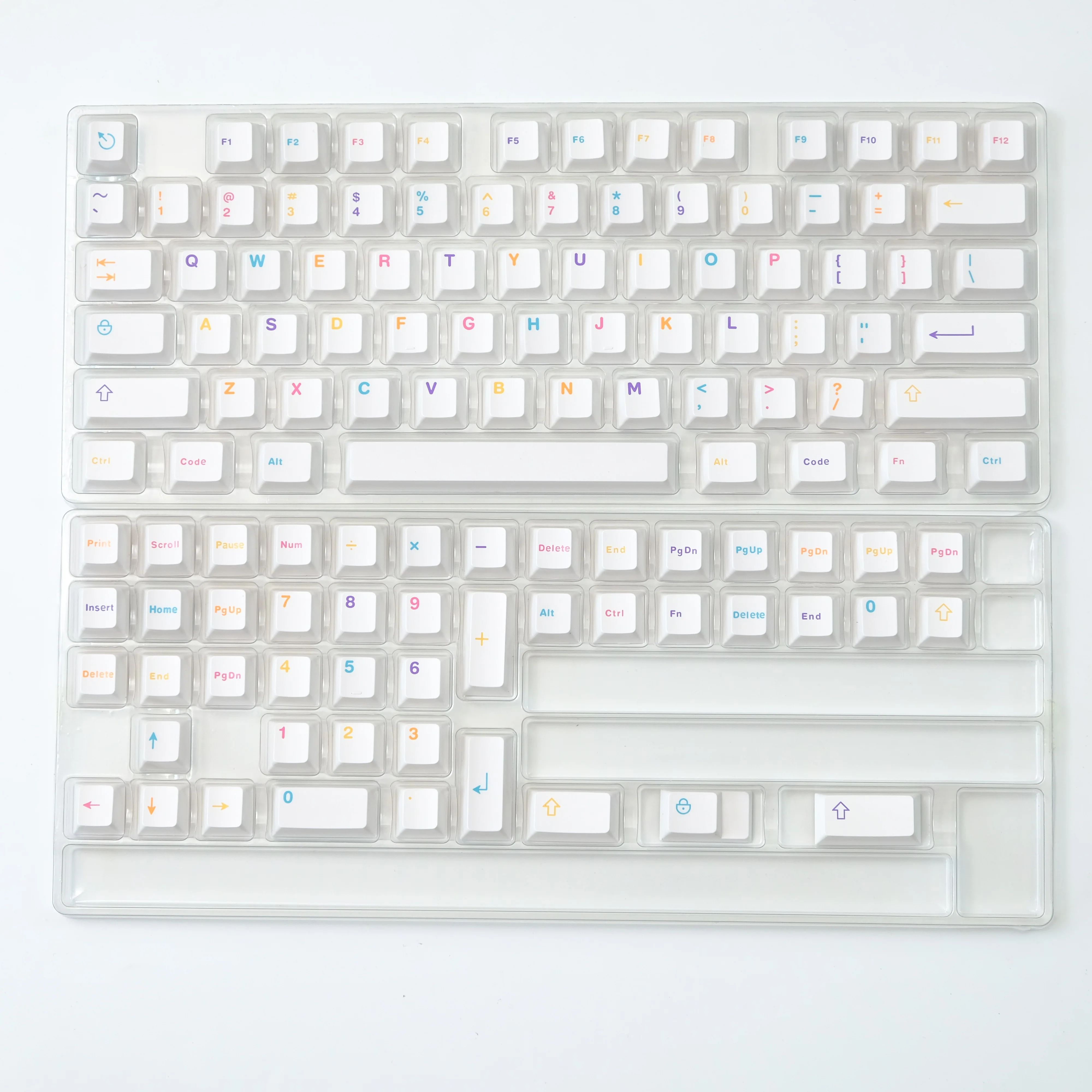 Teclas con un diseño precioso. Grandes colores. Realmente no noto ninguna diferencia entre estas teclas y las oficiales de las teclas preconstruidas. Son igual de agradables para escribir y tienen una apariencia fantástica. Tenga en cuenta la 'e' ligeramente más grande en la tecla 'Código' y la horizontal # llave. Son pequeños errores tipográficos pero no me molestan. Parecen un poco encantadores y también son pequeños recordatorios de los $200 AUD que ahorré al comprar estos clones en lugar de los originales (inobtenibles)... Yo lo he montado en un Monsgeek M7 para darle un toque discreto pero llamativo. Las teclas venían bien empaquetadas en bandejas de plástico dentro de cajas de cartón. La entrega fue rápida.