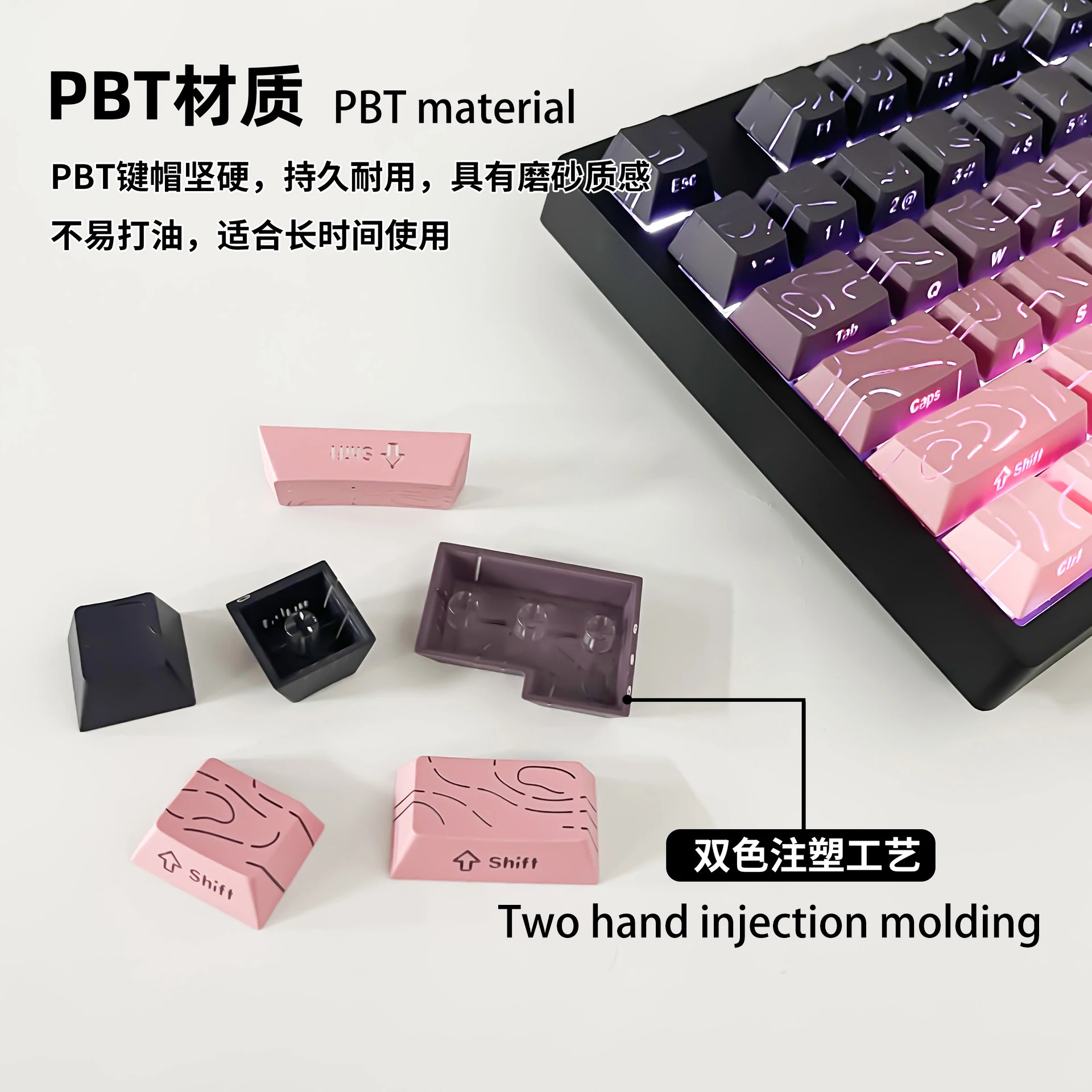 Comprar Teclas de perfil impreso con lados translúcidos degradados para teclado mecánico para juegos, teclas PBT púrpura y verde