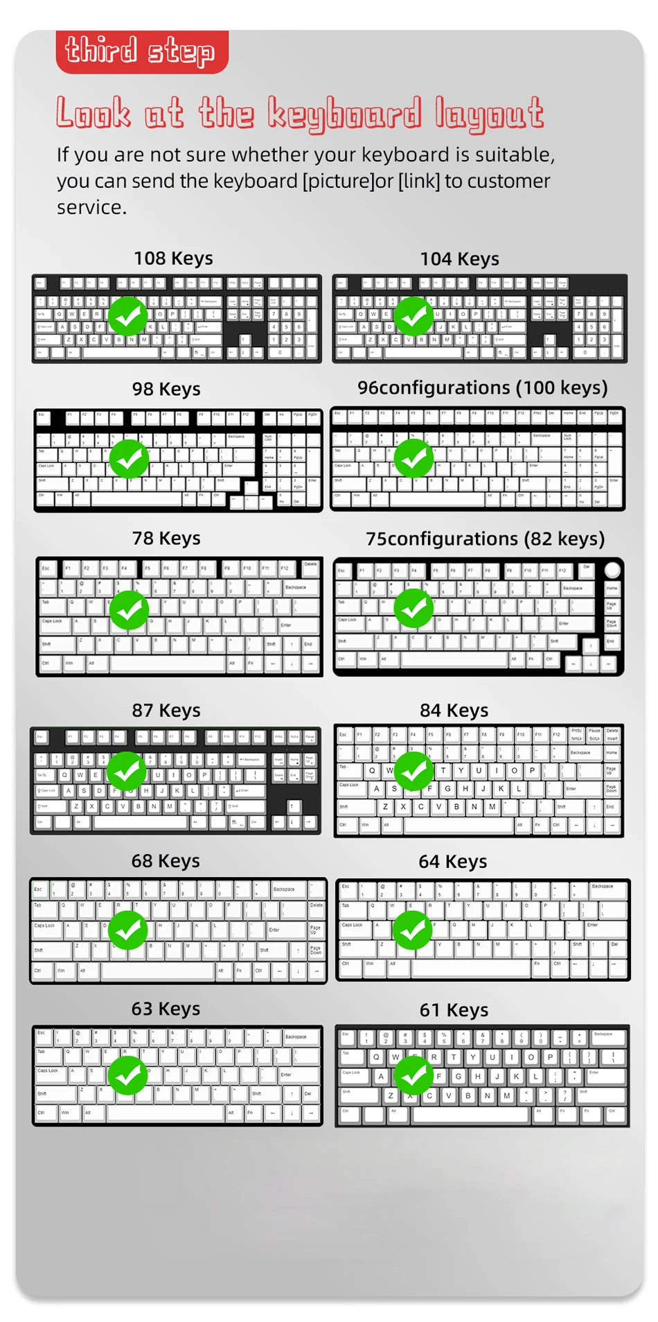 Compatible: GK61/60%/63/64/67/68/RK836(71 teclas)/78/84/87/96(100 teclas) teclado mecánico con interruptores MX/980/104/ISO105/108