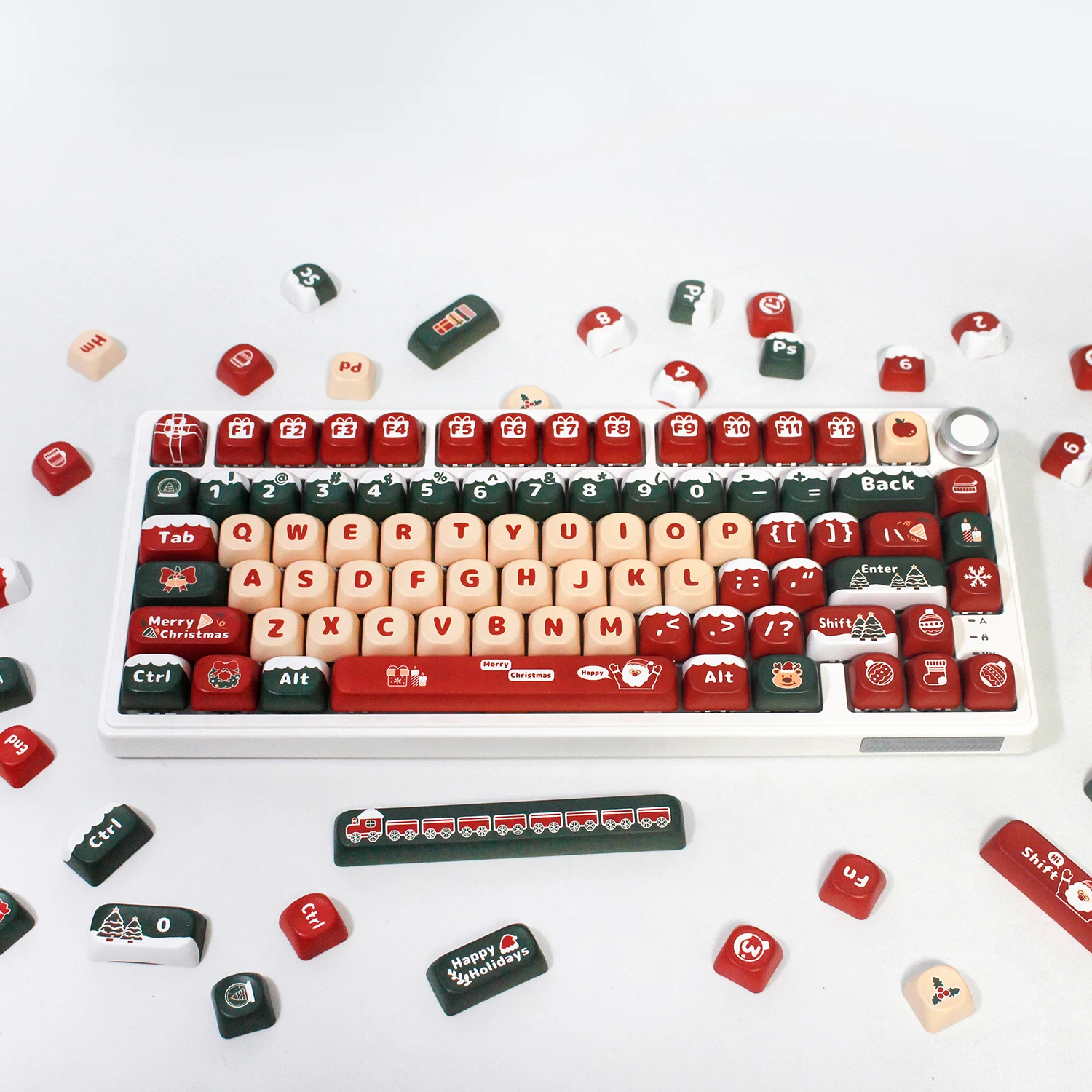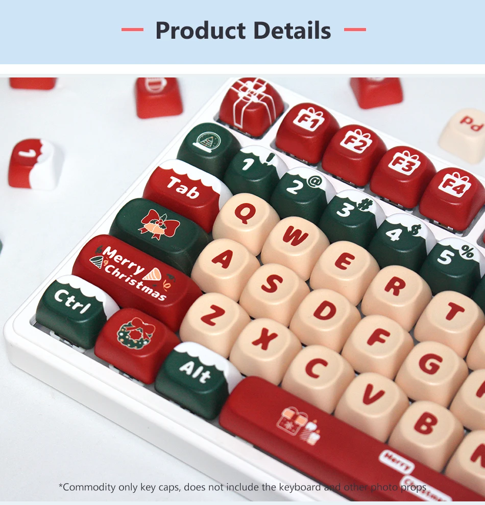 Comprar Teclas de perfil MOA de 130 teclas, teclas PBT con tema de Feliz Navidad para teclado mecánico MX Switch, sublimación de tinte, color rojo y verde