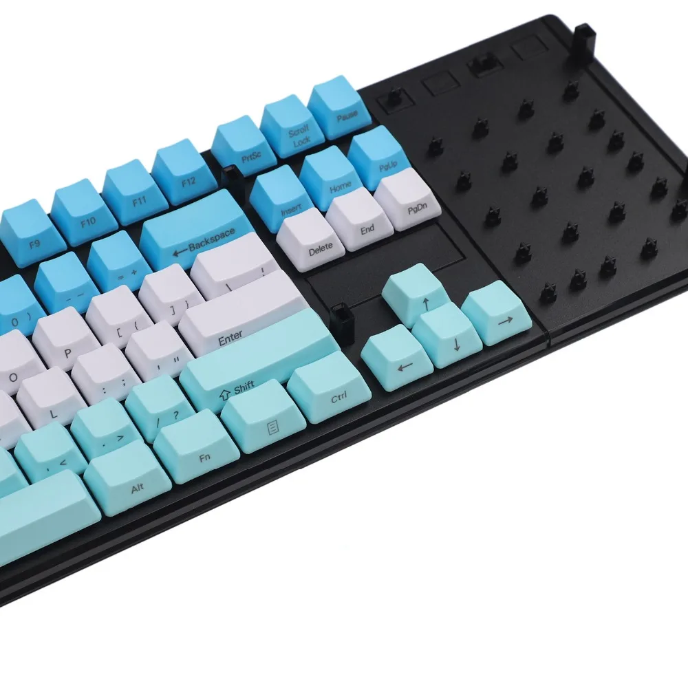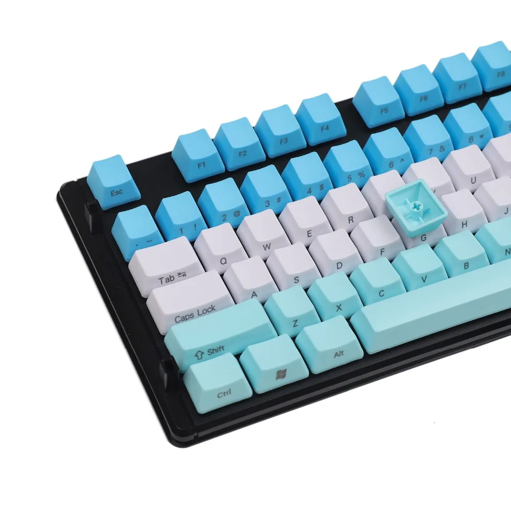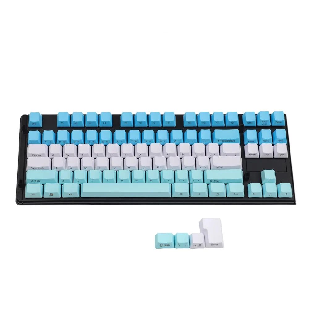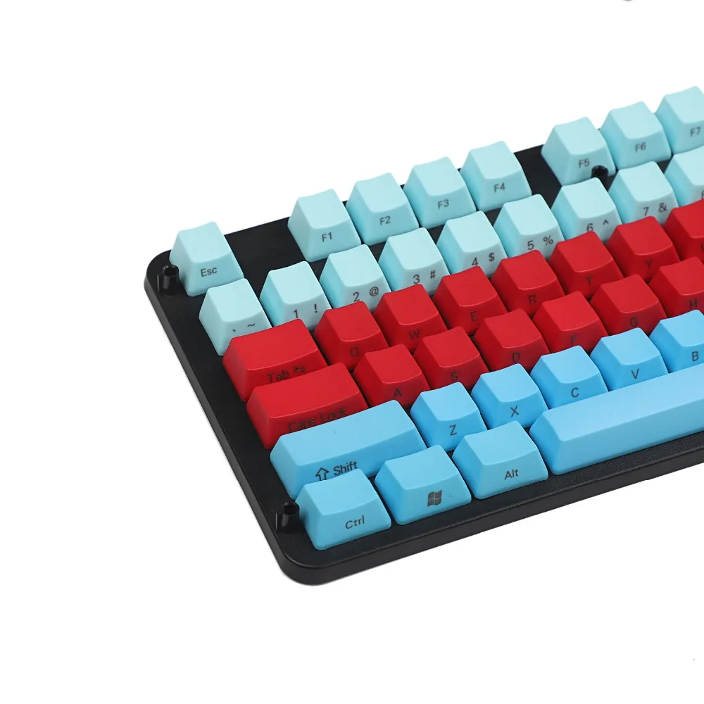 Comprar Teclas de perfil OEM PBT gruesas con estampado lateral de 61 teclas, mezcladas, azules, blancas y rojas, para teclado mecánico MX Standard 104 TKL 61