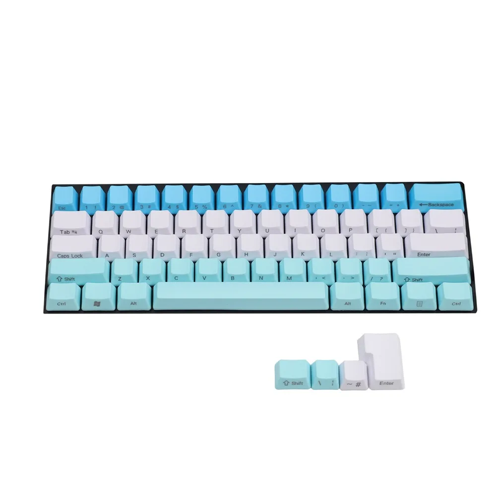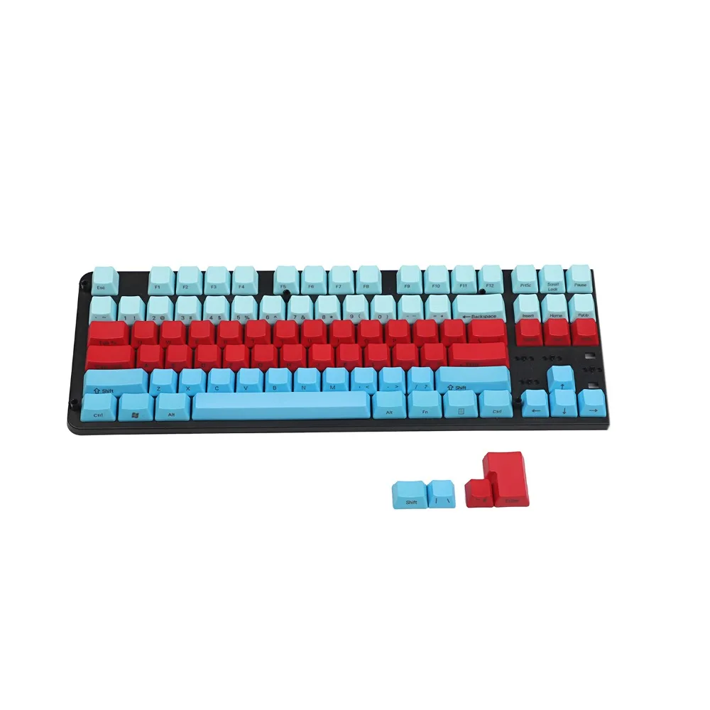 Comprar Teclas de perfil OEM PBT gruesas con estampado lateral de 61 teclas, mezcladas, azules, blancas y rojas, para teclado mecánico MX Standard 104 TKL 61
