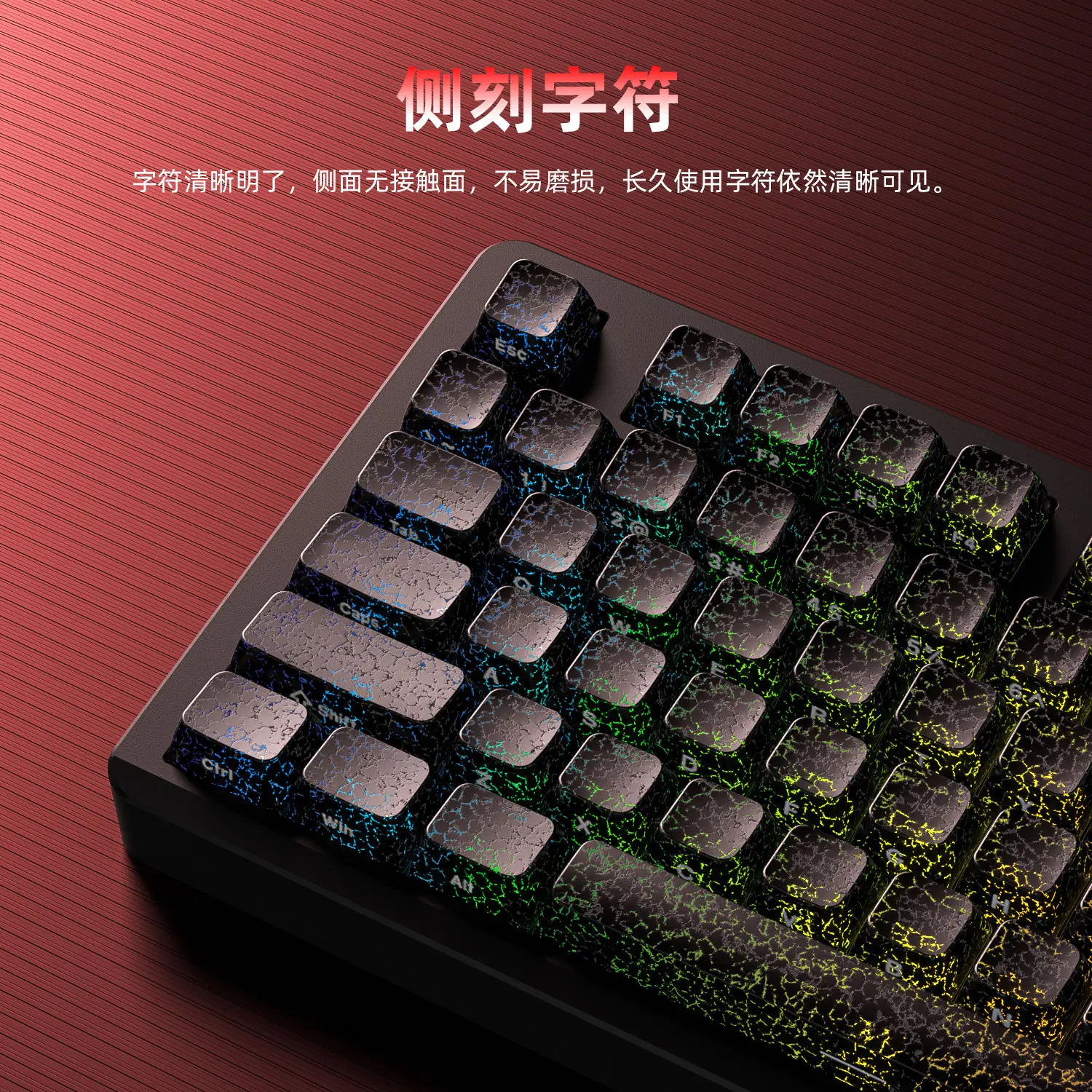 Comprar Teclas personalizadas agrietadas para PC, 123 teclas, teclas translúcidas con grabado lateral MDA para teclado mecánico 60/64/84/98/108, interruptor MX