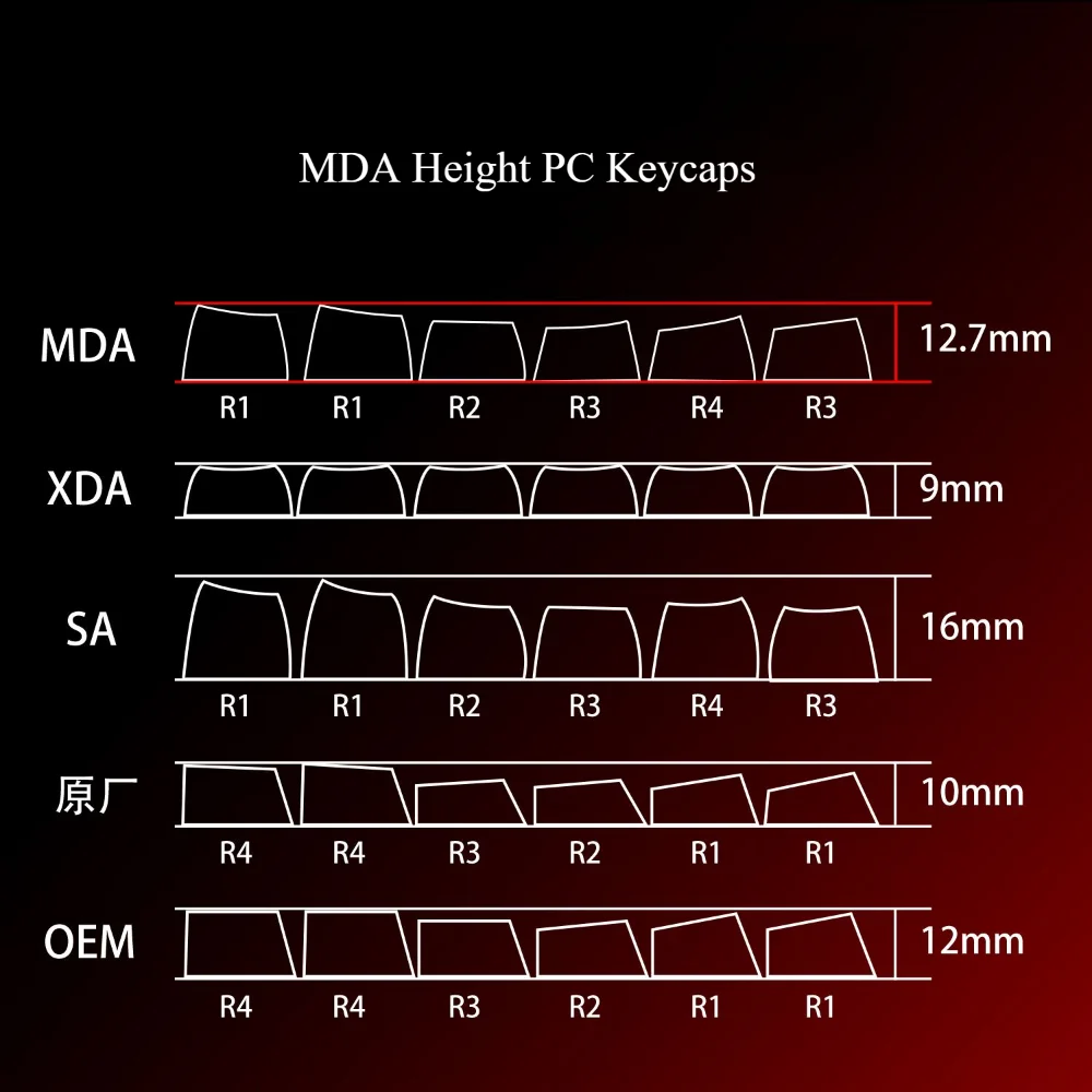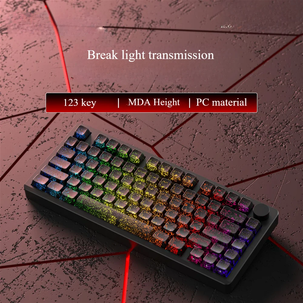 Comprar Teclas personalizadas agrietadas para PC, 123 teclas, teclas translúcidas con grabado lateral MDA para teclado mecánico 60/64/84/98/108, interruptor MX