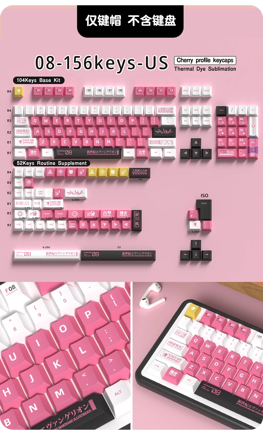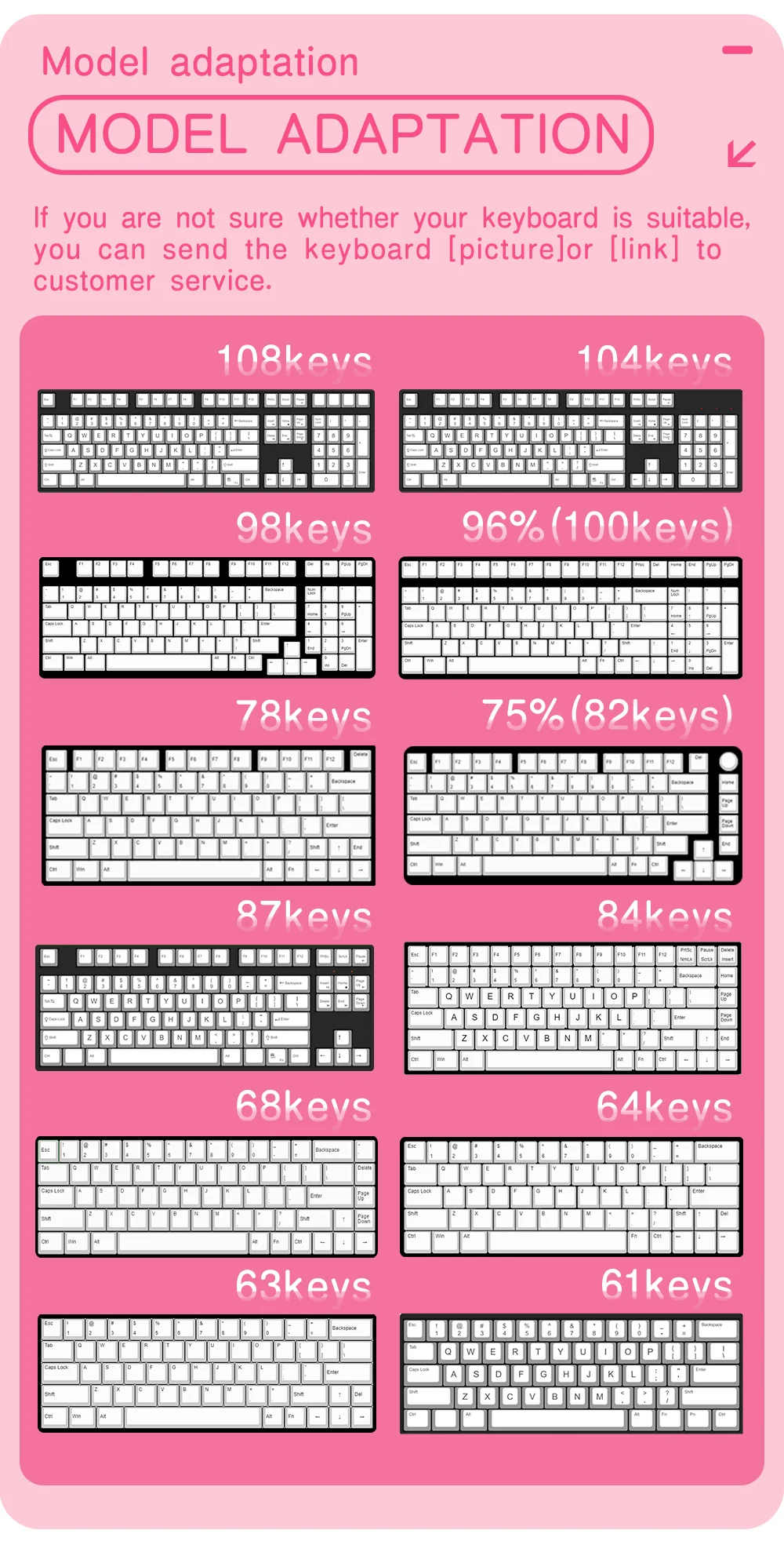 Nota: Este producto son teclas de material PBT, no el teclado.Contenido del paquete:1 x tecla (juego completo)1 extractor de llaves.parámetro:Sumado de tinteCompatible con interruptores MX (y clones)Perfil CHERRY★【Compatible con la mayoría de los teclados mecánicos】 este juego de teclas funciona con la mayoría de los DZ60/GK61/63/64/68/KBD75/81/82/83/87/96 (100 teclas)/98/102/104/108 Cherry MX Switches Mechanical Gaming Teclado y interruptores Outemu, Kailh y Gateron y se adaptan a la mayoría de los teclados ANSI estándar.★【Haga que el teclado sea diferente】 El diseño personalizado ayuda a actualizar el teclado y es una buena opción para su teclado mecánico de bricolaje.★ 【Material PBT de alta calidad】 Las teclas están equipadas con una tapa de tecla PBT de alta calidad y un revestimiento antigrasa, lo que le brinda durabilidad de primera clase y una excelente sensación de escritura. La superficie mate sin brillo durará más que las teclas de ABS.
