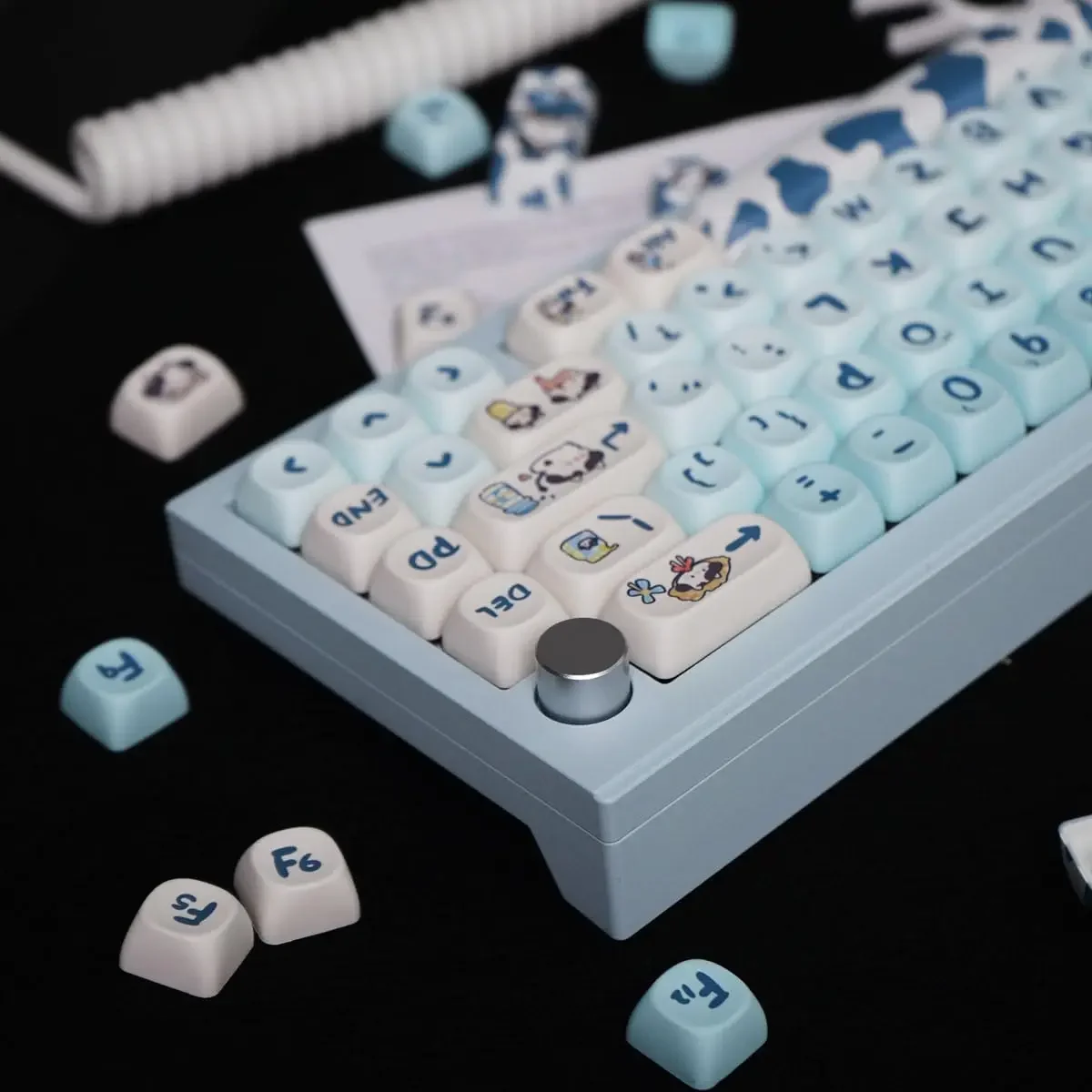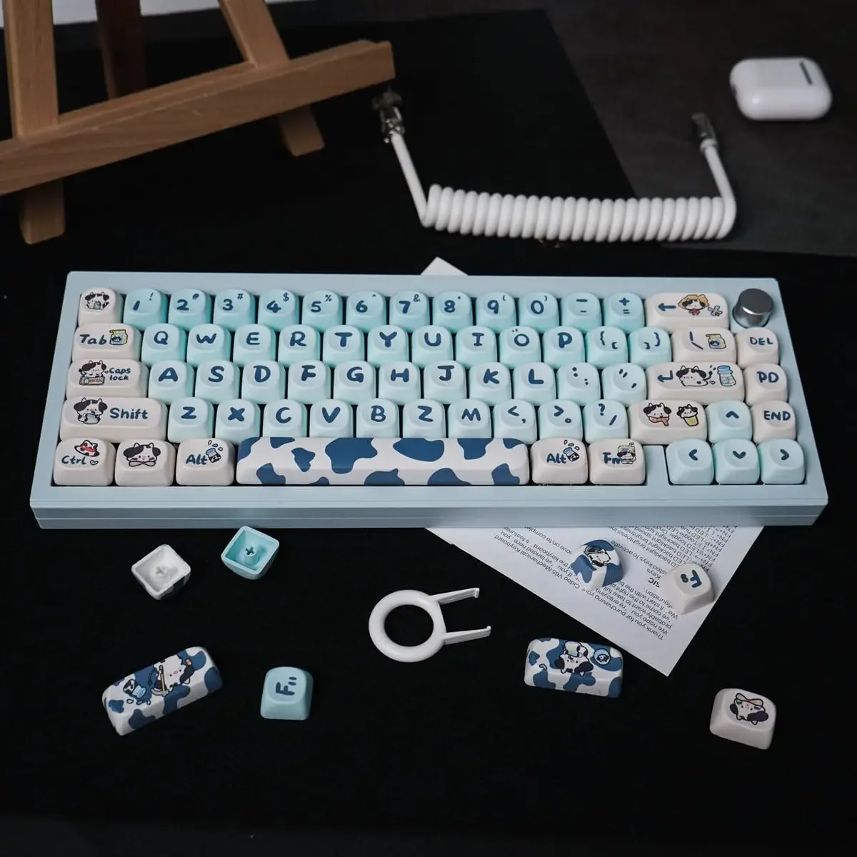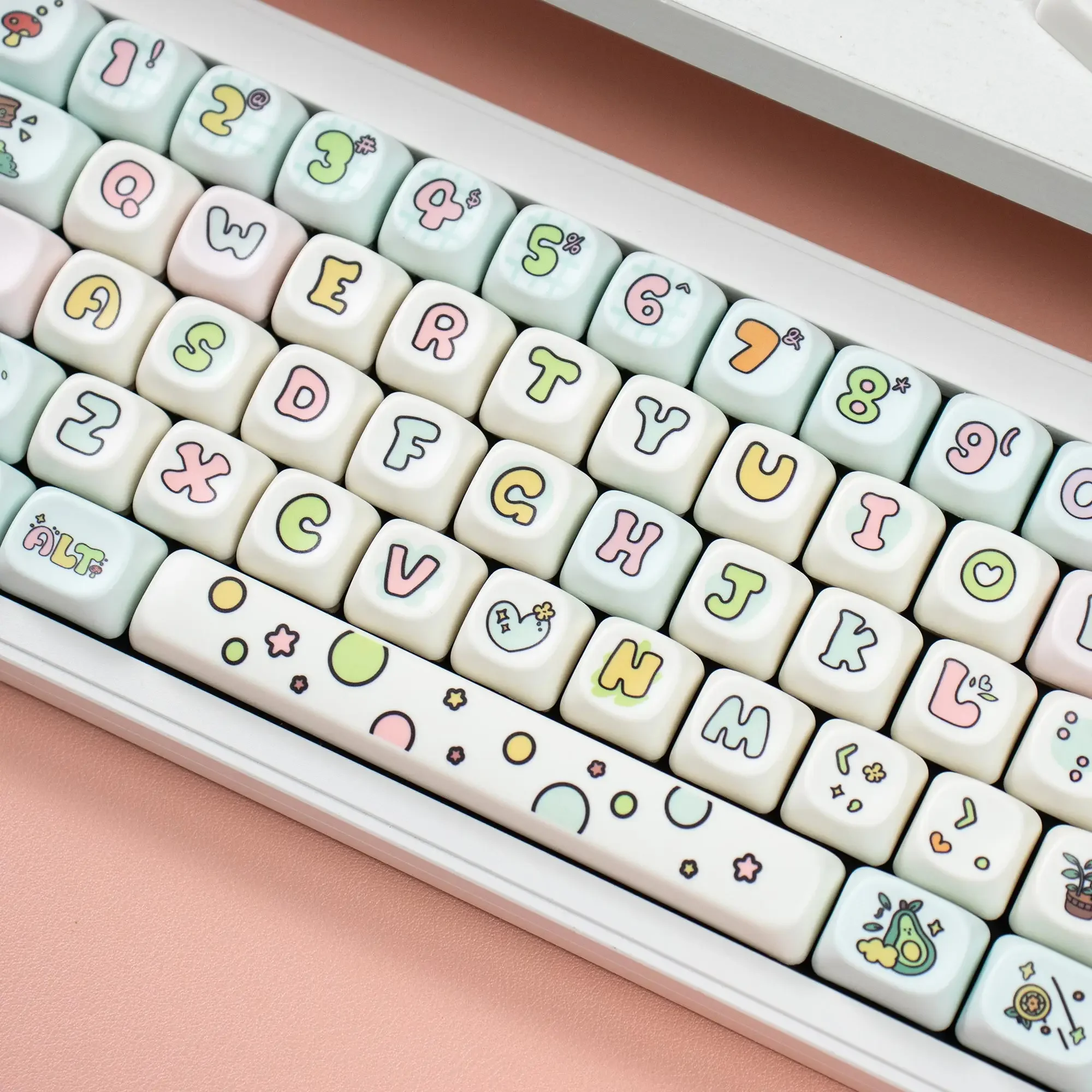 [Teclas PBT Dye-Sub]: con material PBT de alta calidad y un revestimiento antigrasa, estas teclas brindan una durabilidad de primer nivel y una excelente sensación al escribir. La leyenda de la tecla es muy clara y linda.La tecnología avanzada de sublimación de tinte hace que el hermoso patrón nunca se desvanezca.