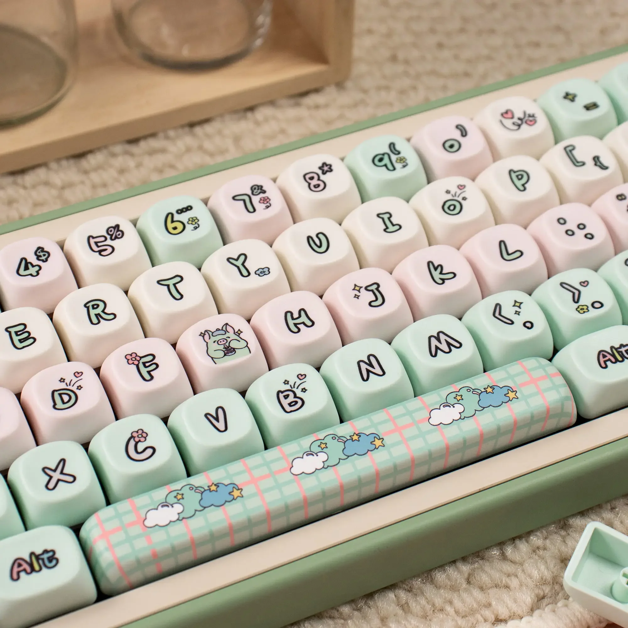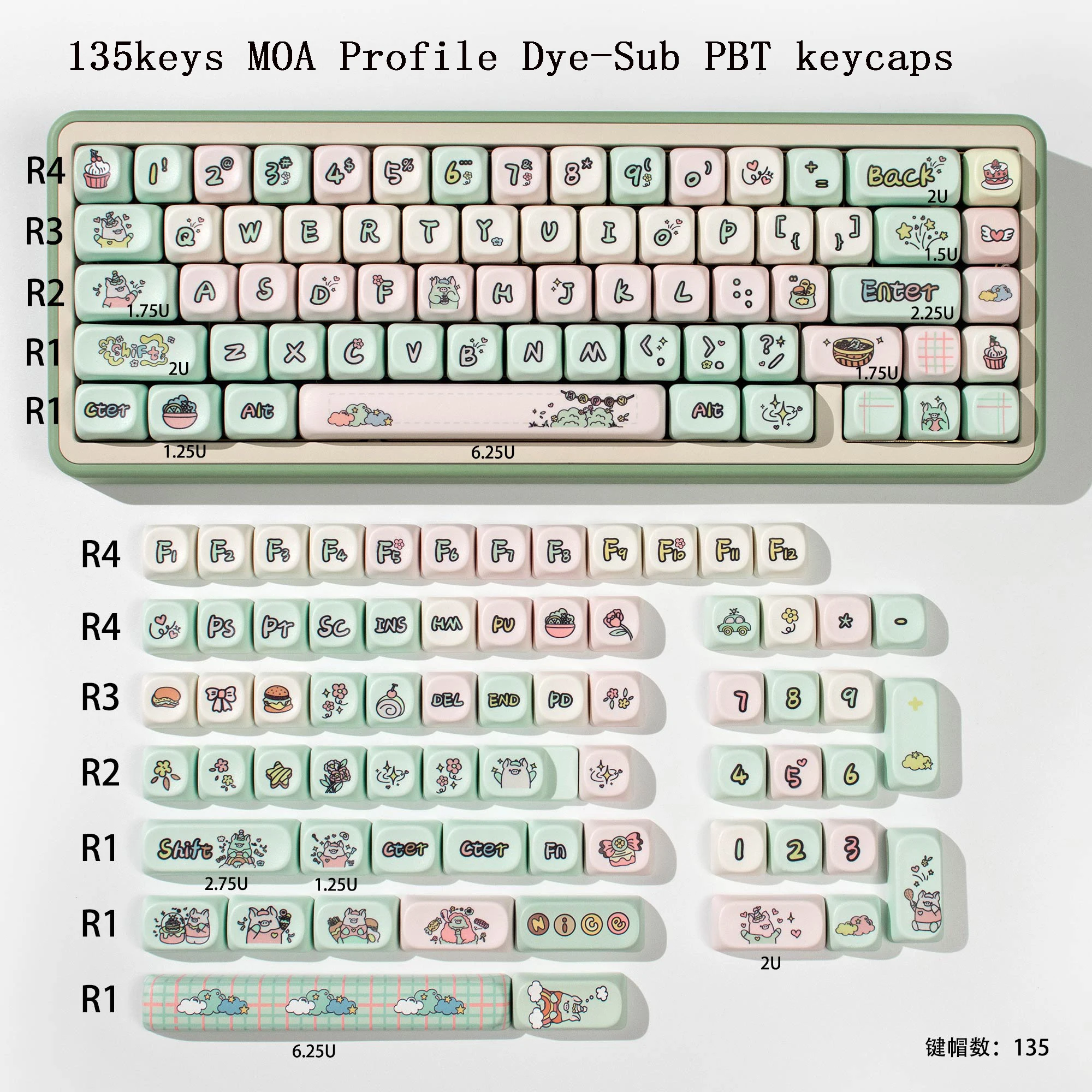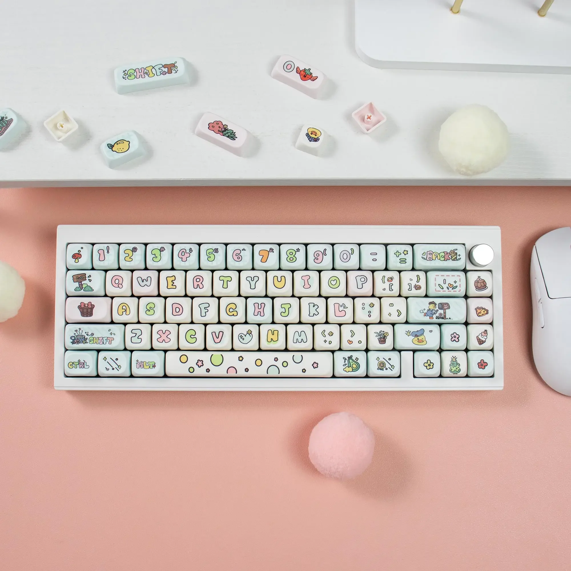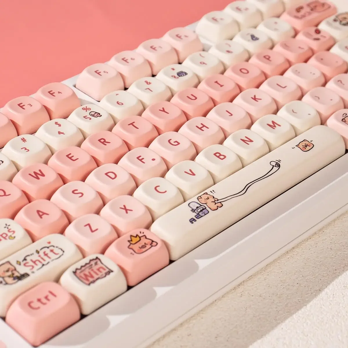 [Teclas PBT Dye-Sub]: con material PBT de alta calidad y un revestimiento antigrasa, estas teclas brindan una durabilidad de primer nivel y una excelente sensación al escribir. La leyenda de la tecla es muy clara y linda.La tecnología avanzada de sublimación de tinte hace que el hermoso patrón nunca se desvanezca.