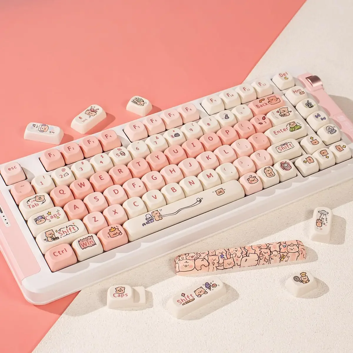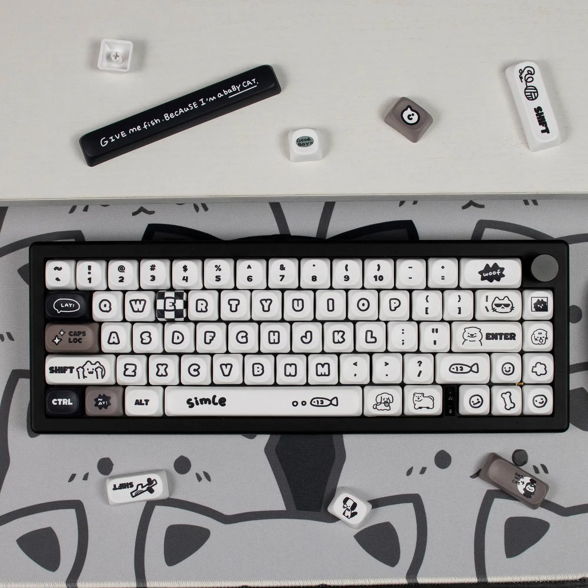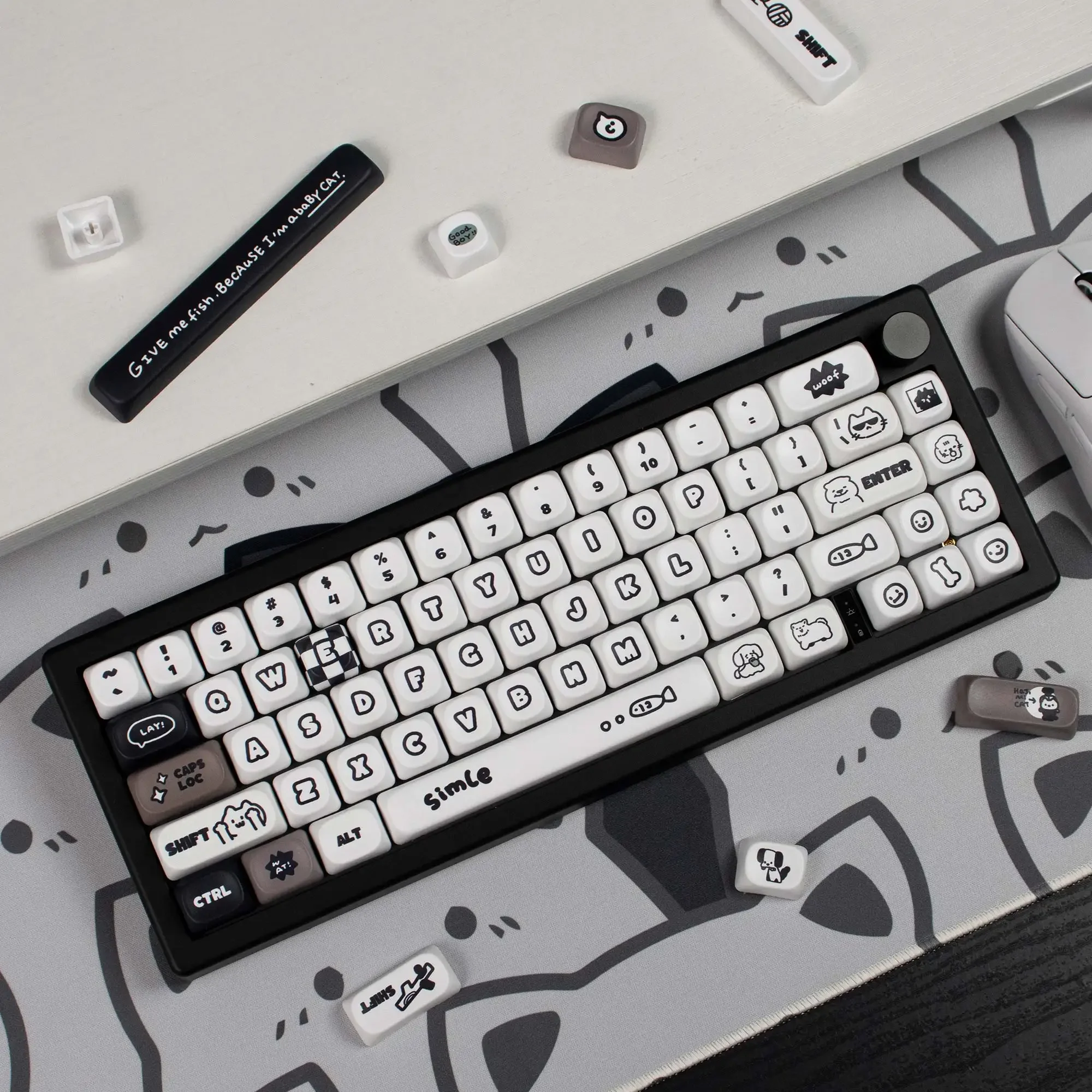 Comprar Teclas personalizadas con bonitos gatos y cachorros, altura MOA, PBT, sublimación térmica, juego completo de teclas para teclado mecánico 64/104/108