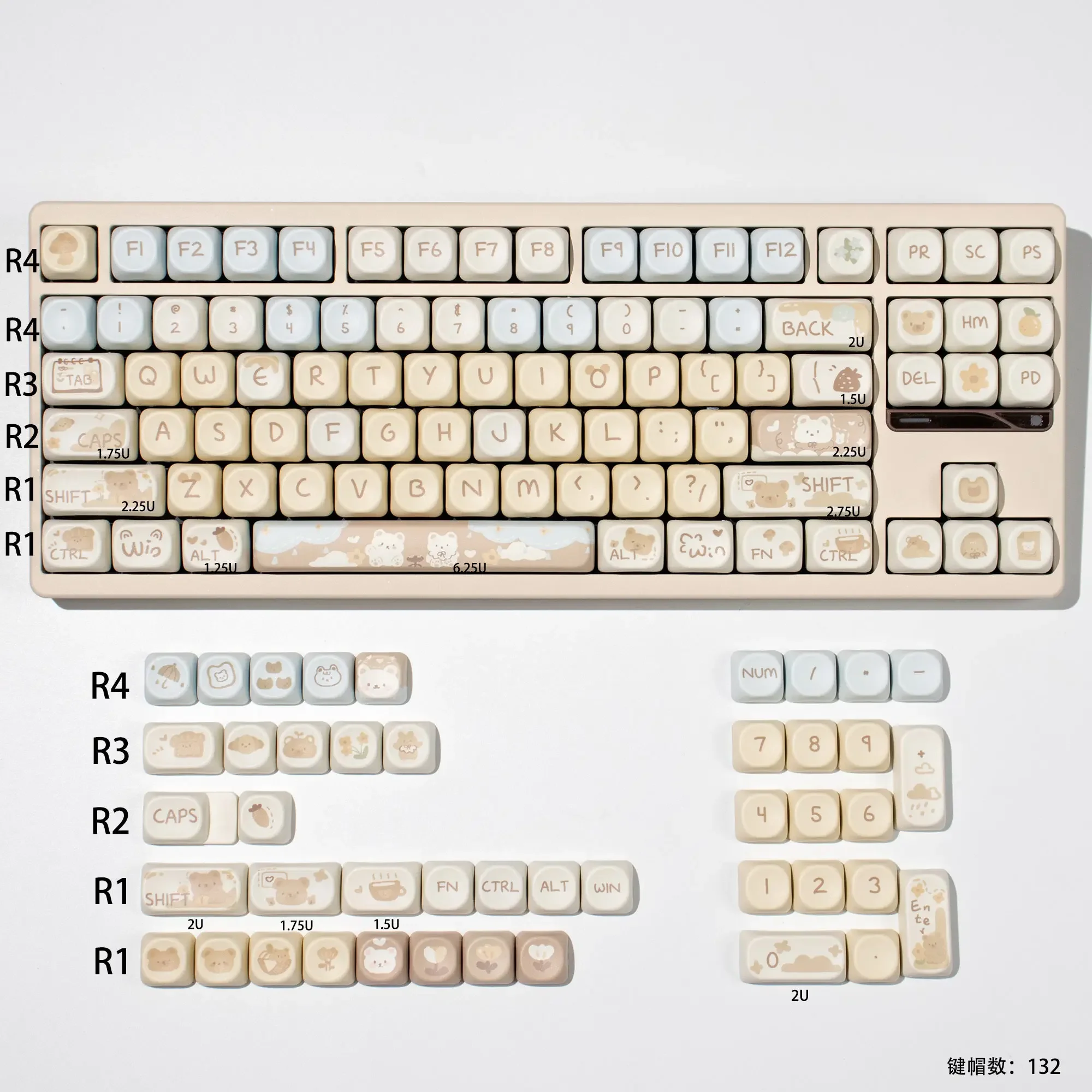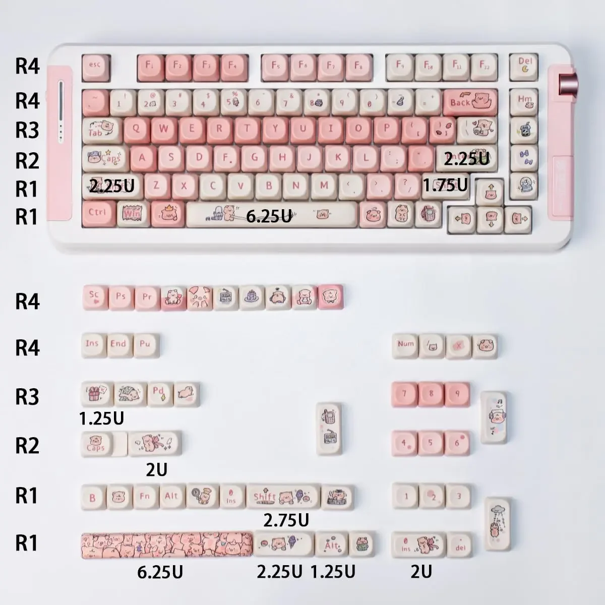 Se adapta a la mayoría de los teclados mecánicos ANSI Layout 61/68/84/87/100/104/108 teclas.