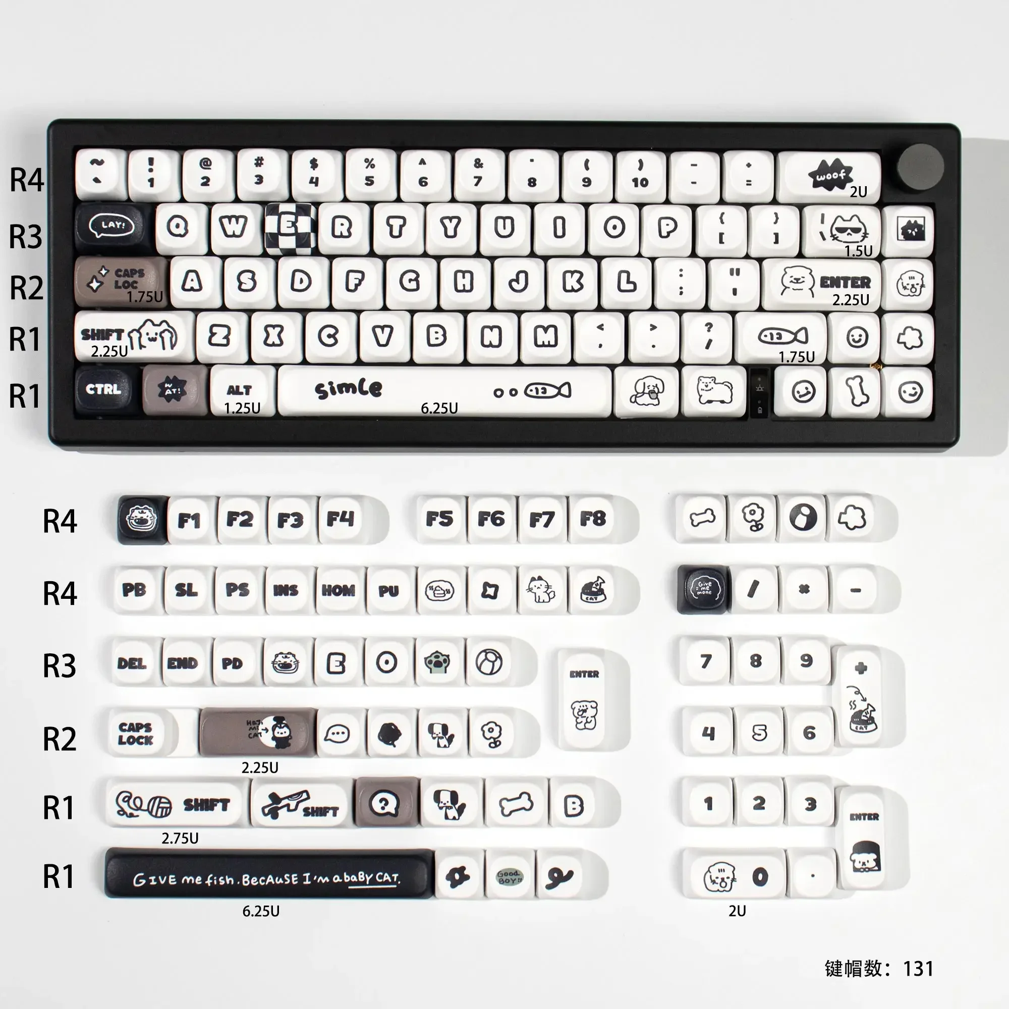 Comprar Teclas personalizadas con bonitos gatos y cachorros, altura MOA, PBT, sublimación térmica, juego completo de teclas para teclado mecánico 64/104/108