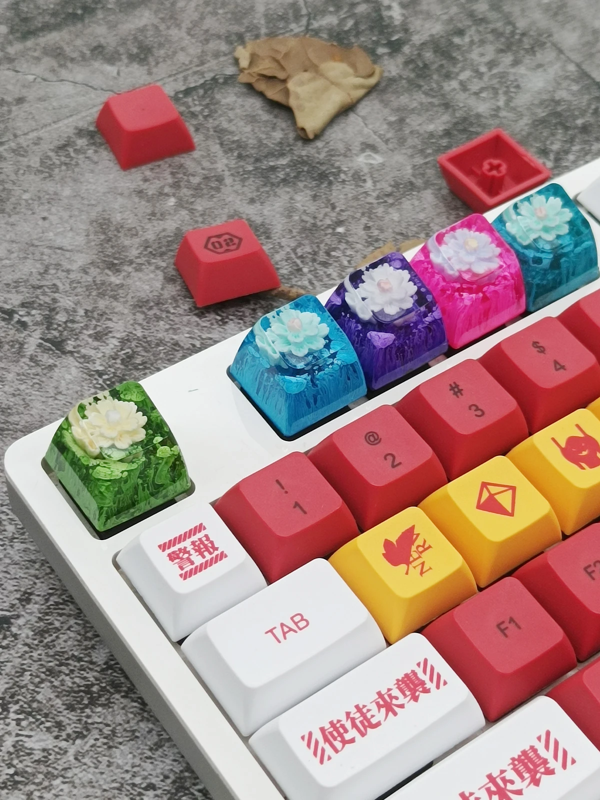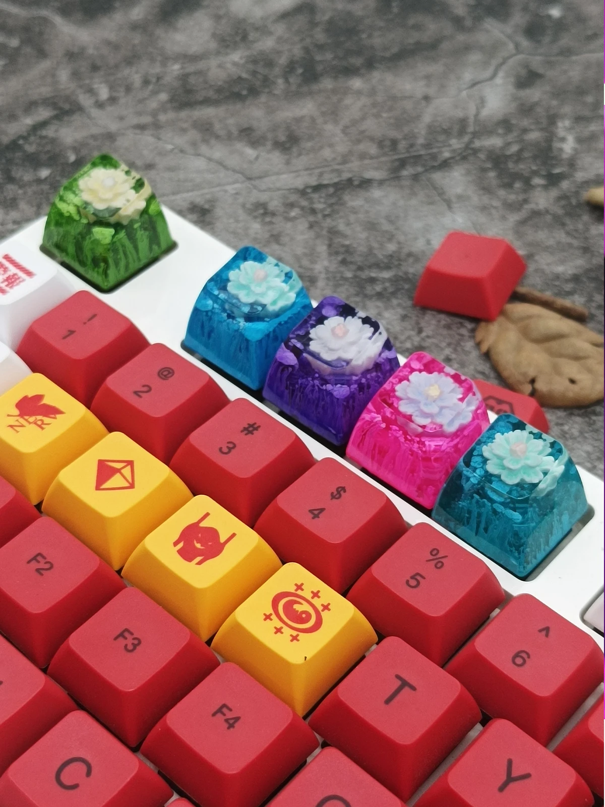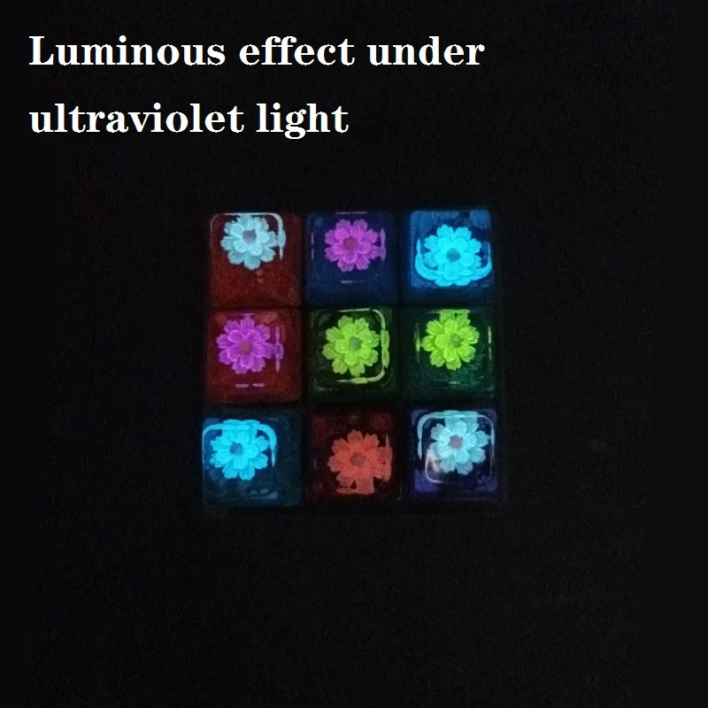 Comprar Teclas personalizadas de flores naturales hechas a mano, teclado mecánico retroiluminado de resina artesanal de lujo para Gamer, teclas RGB para Anne Pro2 GK64 87