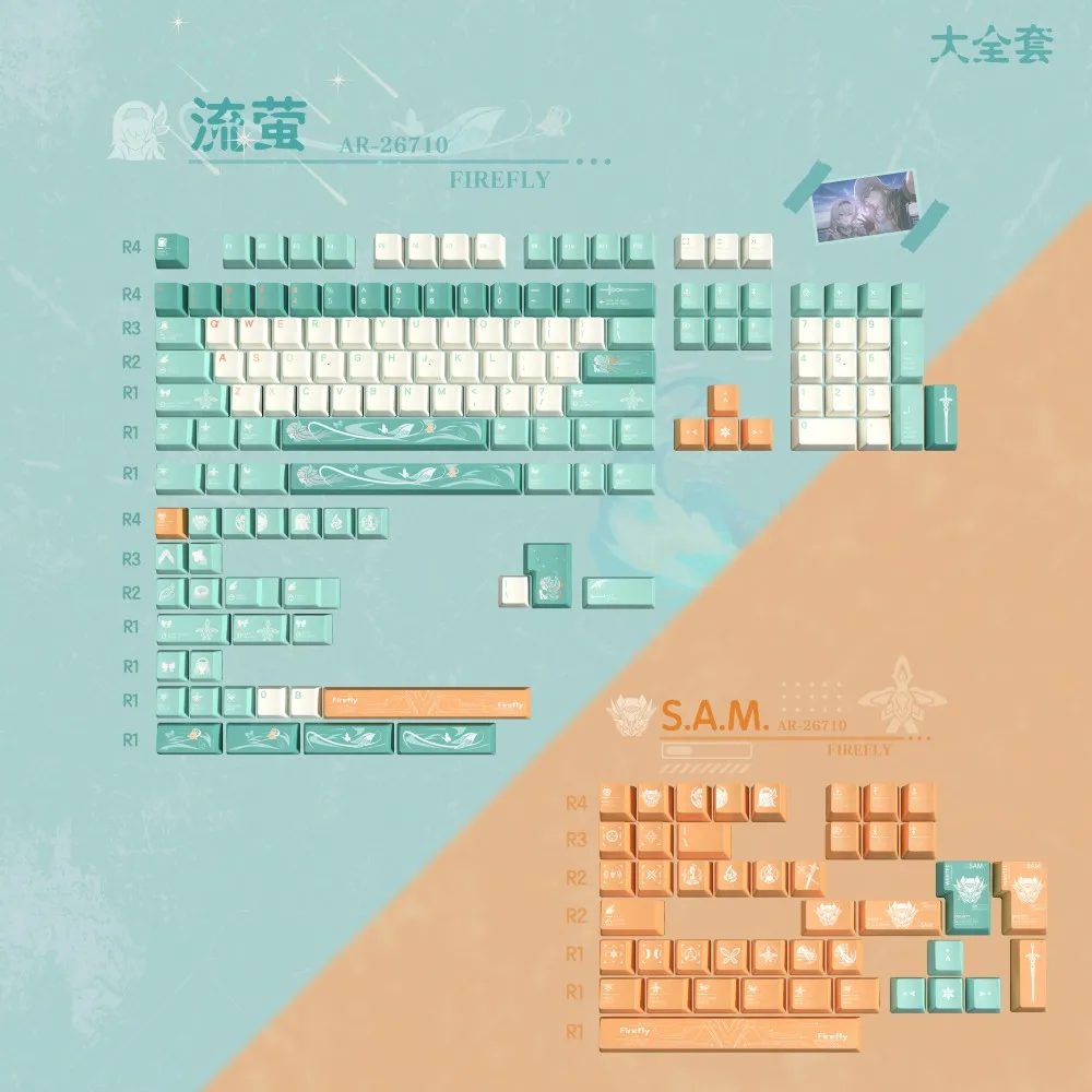 Keycap personalizado Firefly Theme 186 Keys PBT DYE-Sublimación 1,5mm Grosor Cherry Profile Keycaps para teclado mecánico para juegos