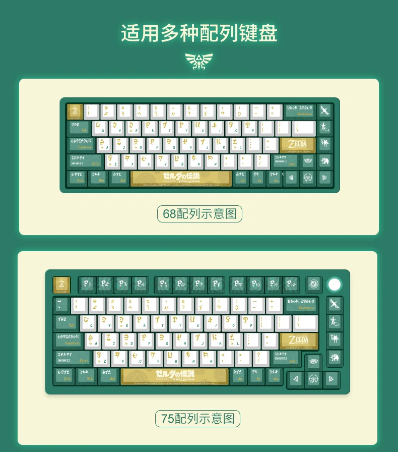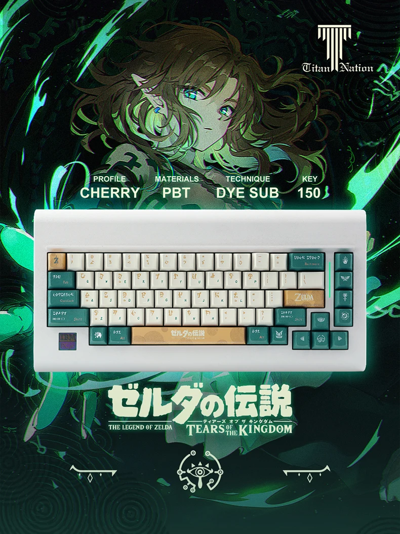 150 teclas para el tema del juego Zelda, teclas DYE-SUB Cherry PBT, teclas de perfil para Cherry MX Switch, Teclado mecánico, teclas personalizadas