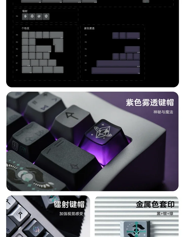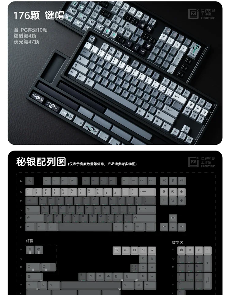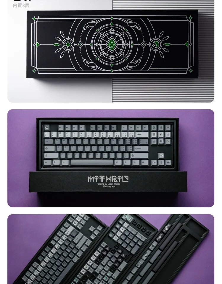 Teclas plateadas secretas Frontier originales Pbt 176 teclas personalizadas para teclado mecánico Cherry Wooting ROG, accesorios para Pc