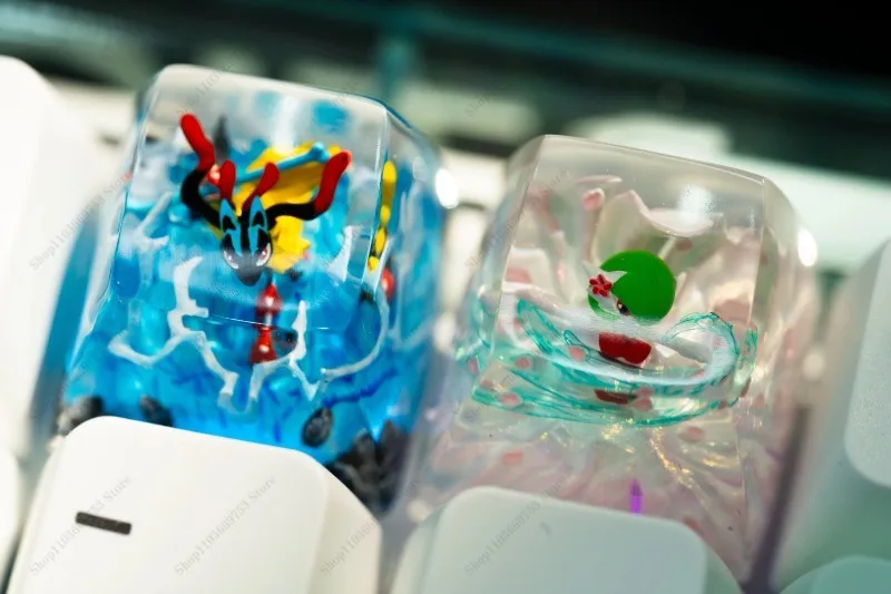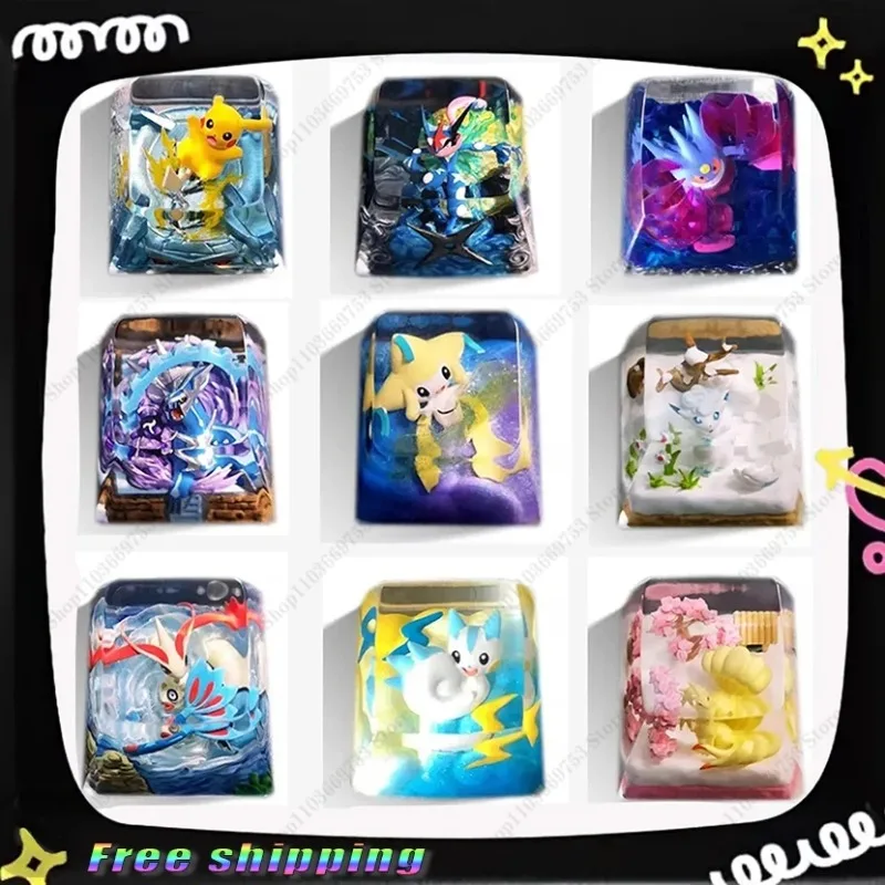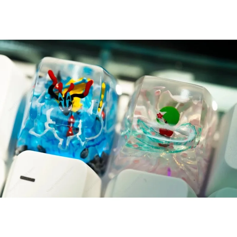 Comprar Teclas de Pokémon Anime Pikachu Metagross, teclas estereoscópicas transparentes de resina personalizadas para accesorios de teclado mecánico, regalos