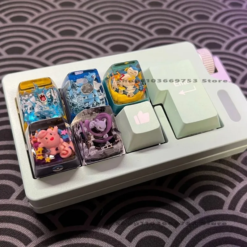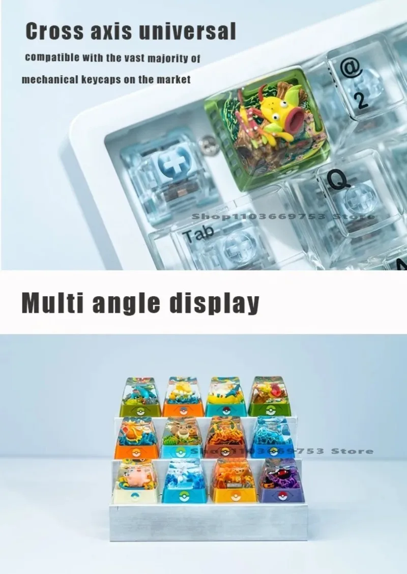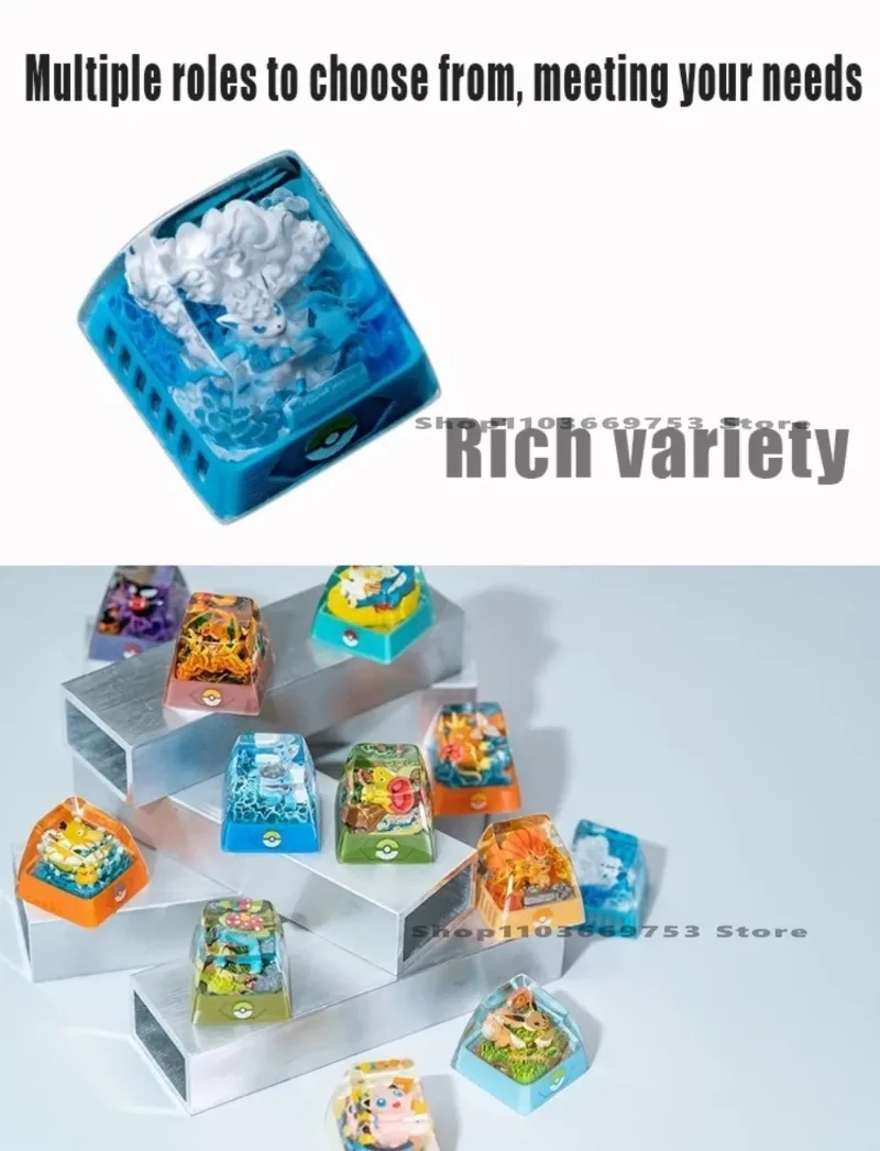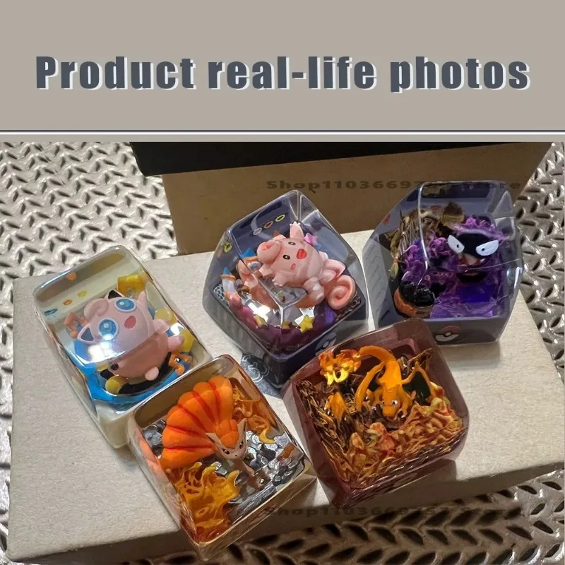 Comprar Teclas de Pokemon Gengar Pikachu Charizard Eevee, tapa de llave Micro transparente de resina personalizada, tapa de teclado de ordenador creativa mecánica
