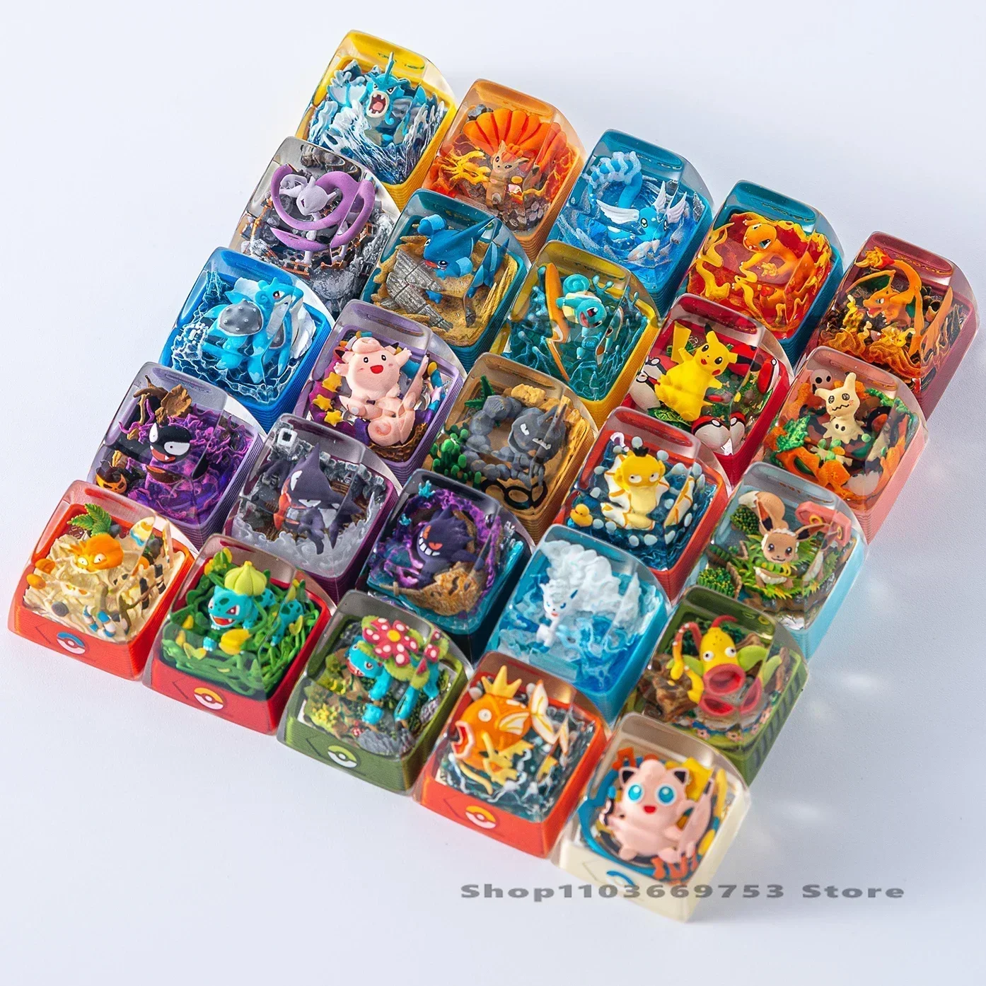 Comprar Teclas de Pokemon Gengar Pikachu Charizard Eevee, tapa de llave Micro transparente de resina personalizada, tapa de teclado de ordenador creativa mecánica