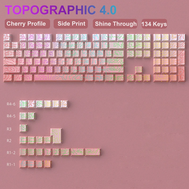 Comprar Teclas Polar topográficas 4,0 PBT de 134 teclas, doble disparo, impresión lateral, brillo a través de teclas retroiluminadas para teclado mecánico MX Gamer