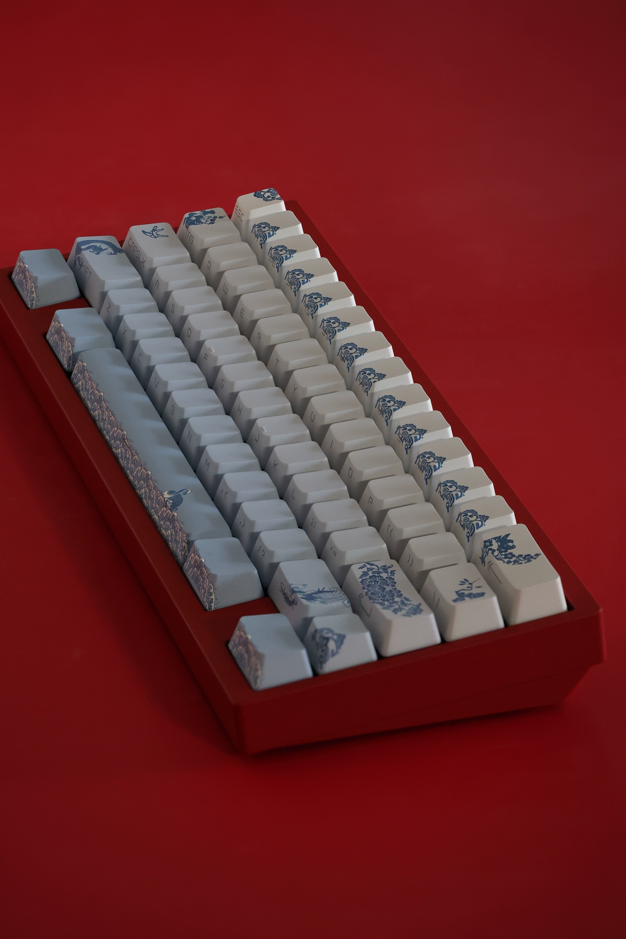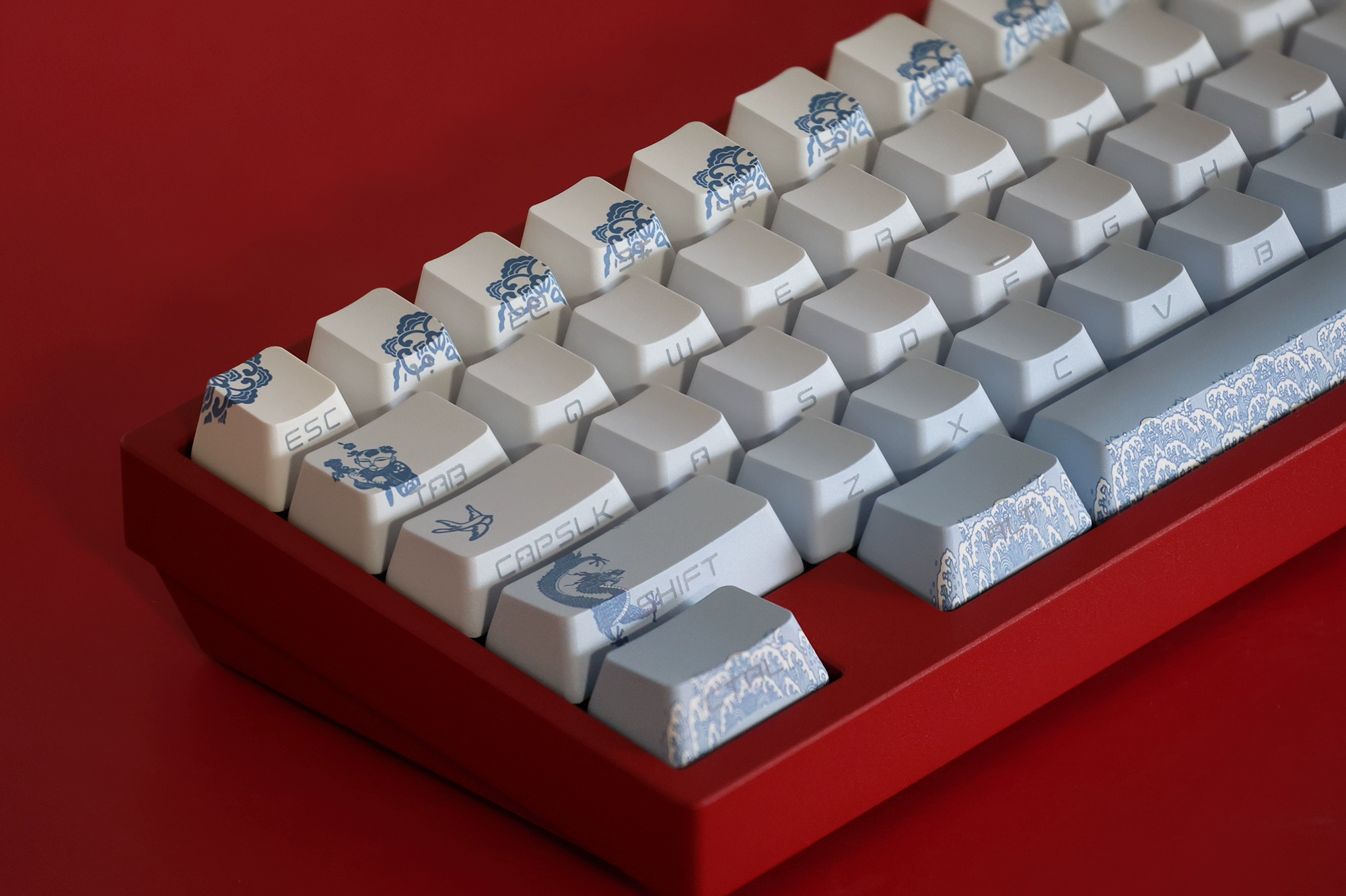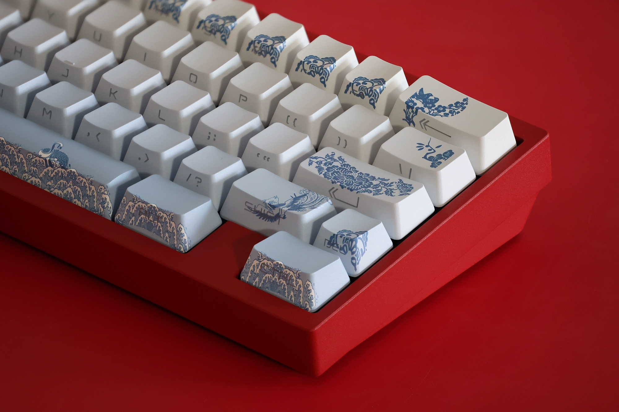 Comprar Teclas de porcelana azul y blanca con gradiente azul, impresión lateral retroiluminada, perfil PBT OEM para teclado Mx Switch 67 75 8, 134 teclas