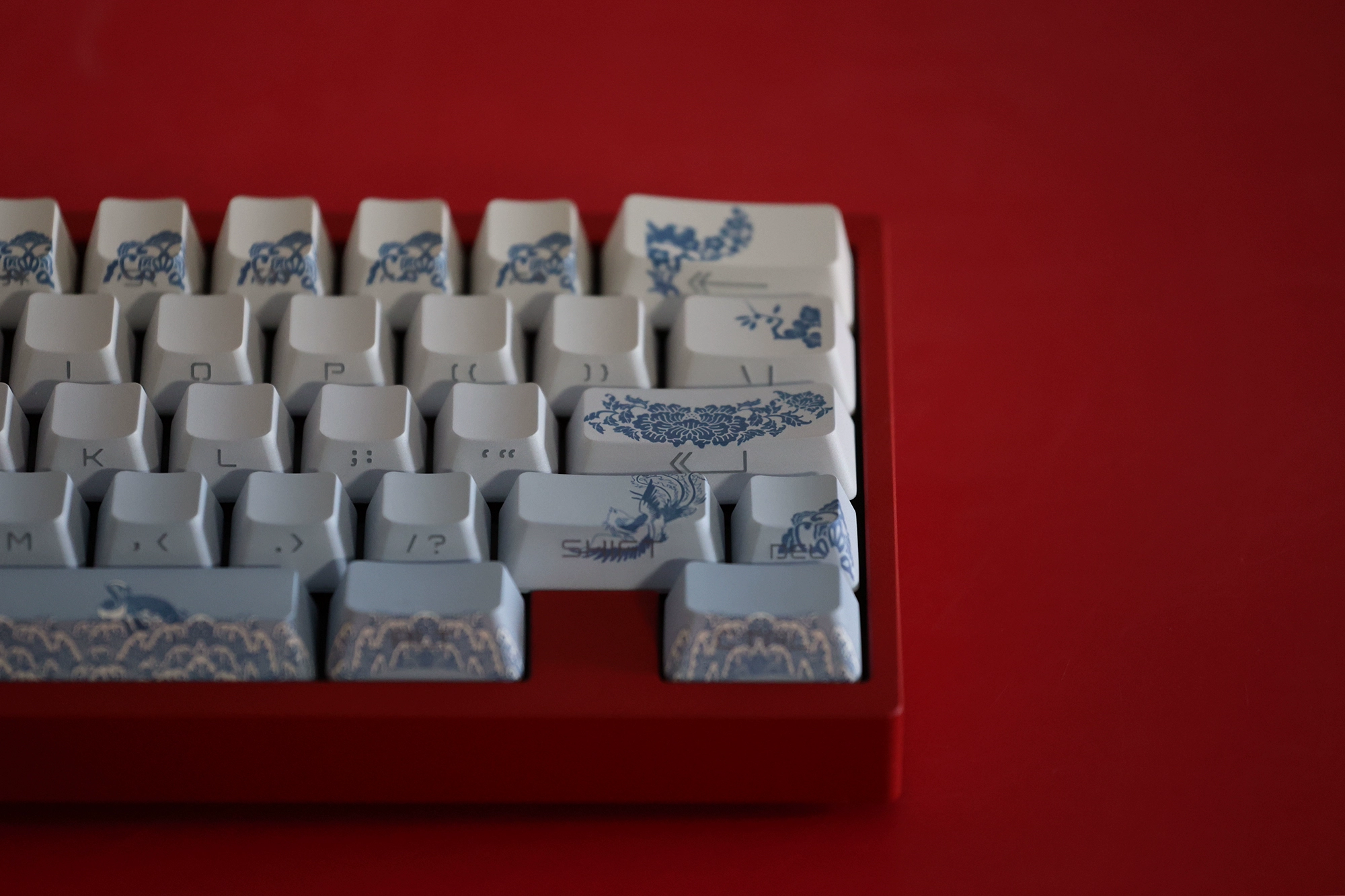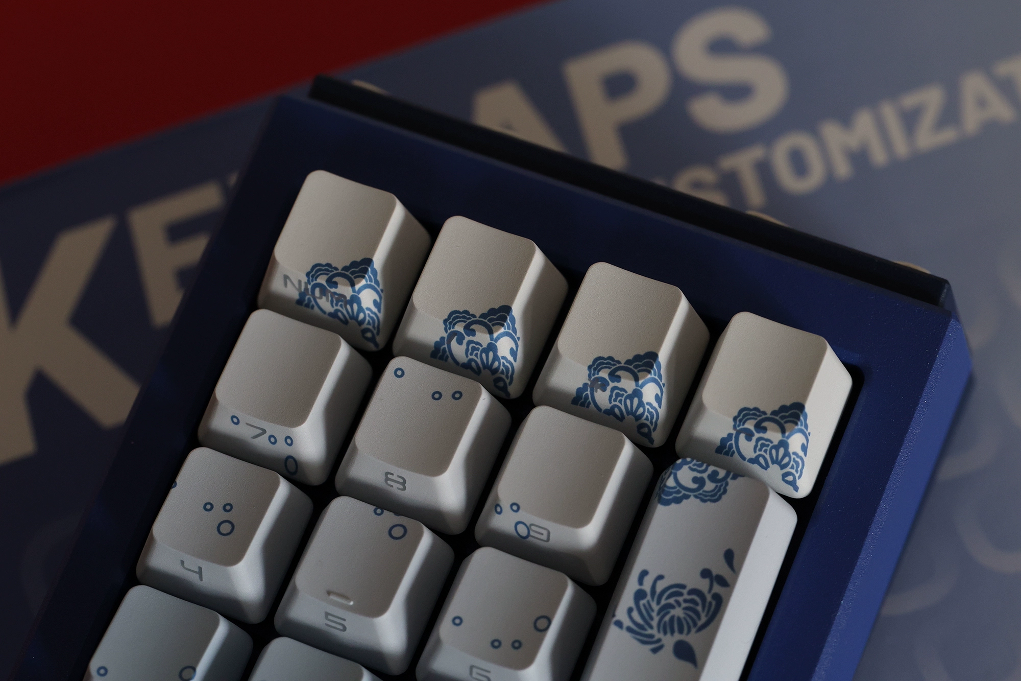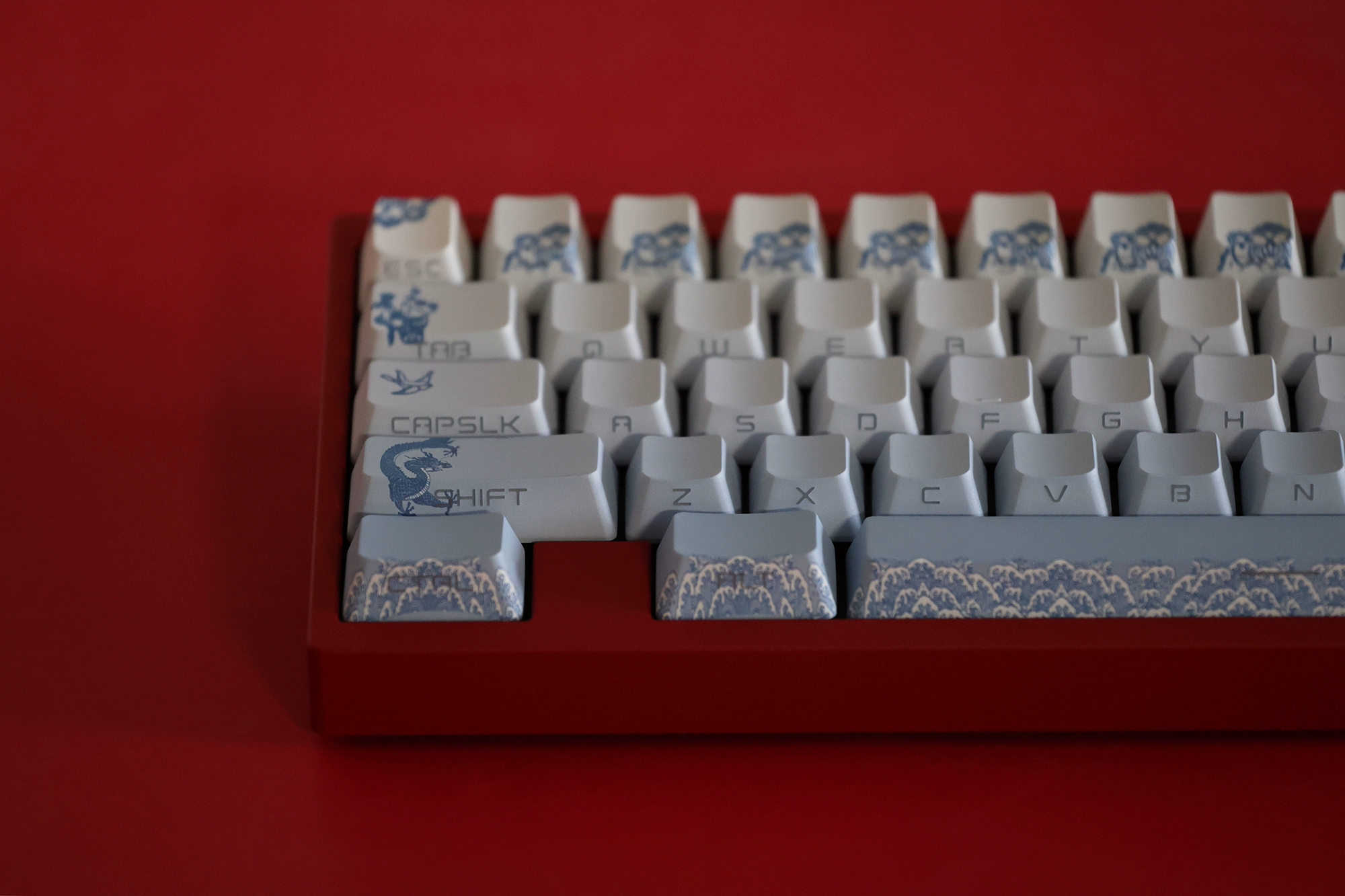 Comprar Teclas de porcelana azul y blanca con gradiente azul, impresión lateral retroiluminada, perfil PBT OEM para teclado Mx Switch 67 75 8, 134 teclas