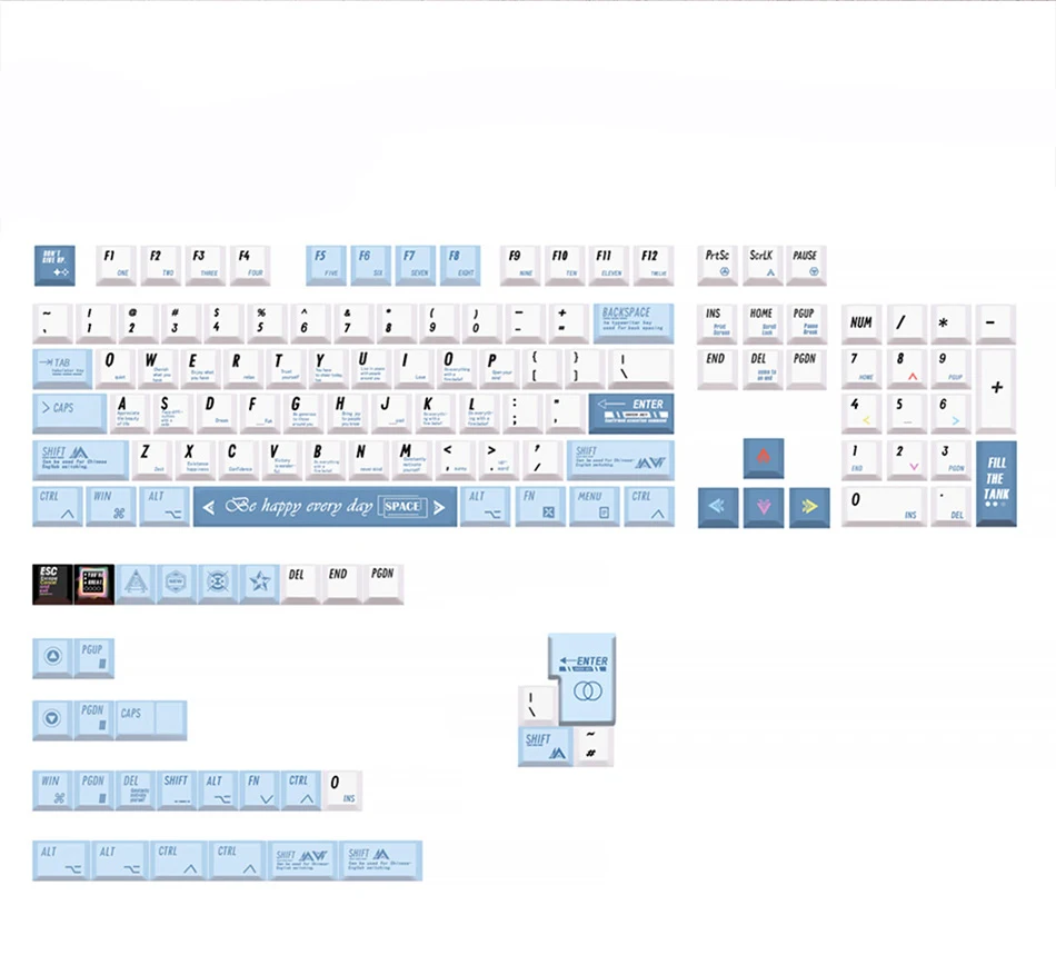 Número de teclas: 136 teclas, incluye cambio 1.75U 2U, control Alt 1.5U, Barra espaciadora 6.25U,