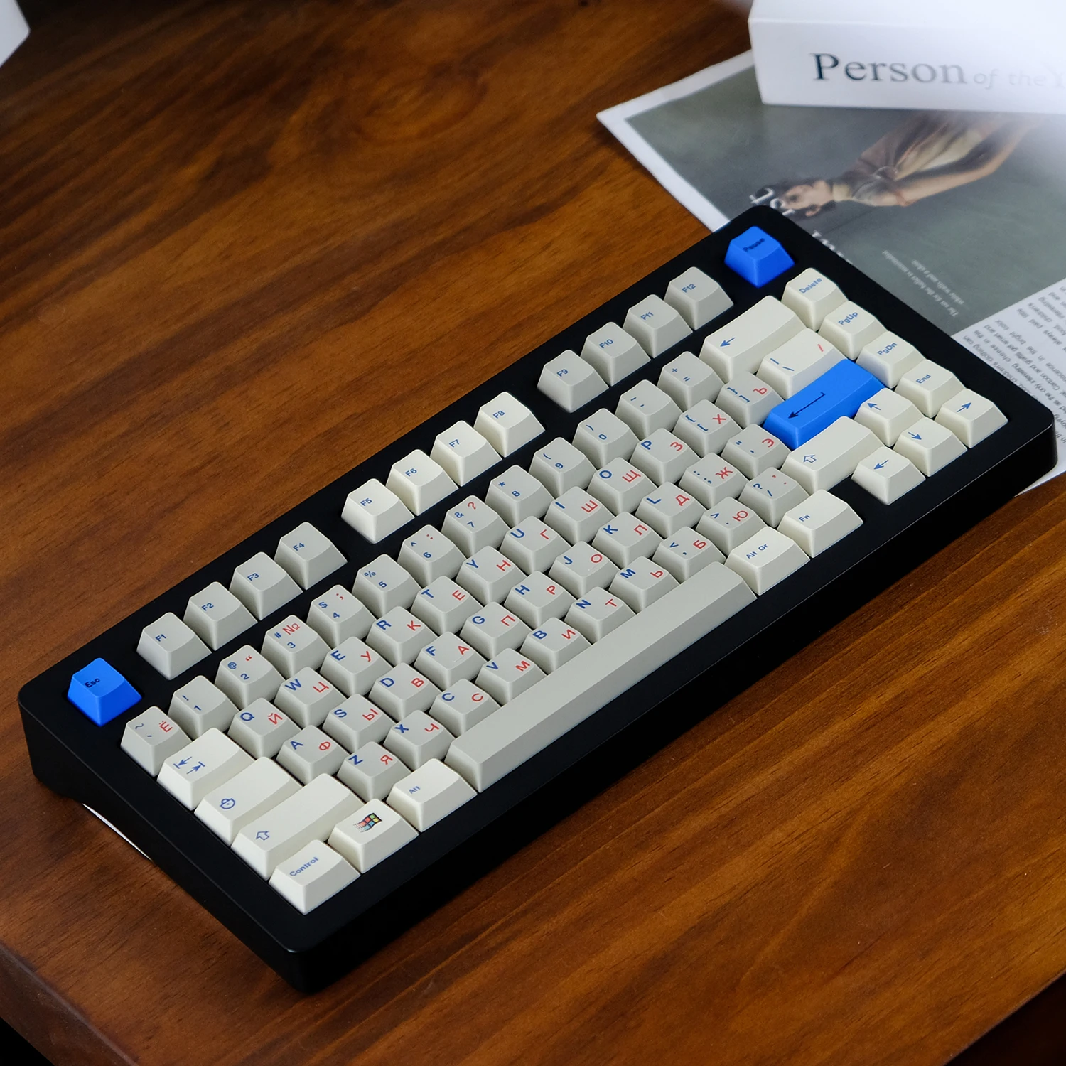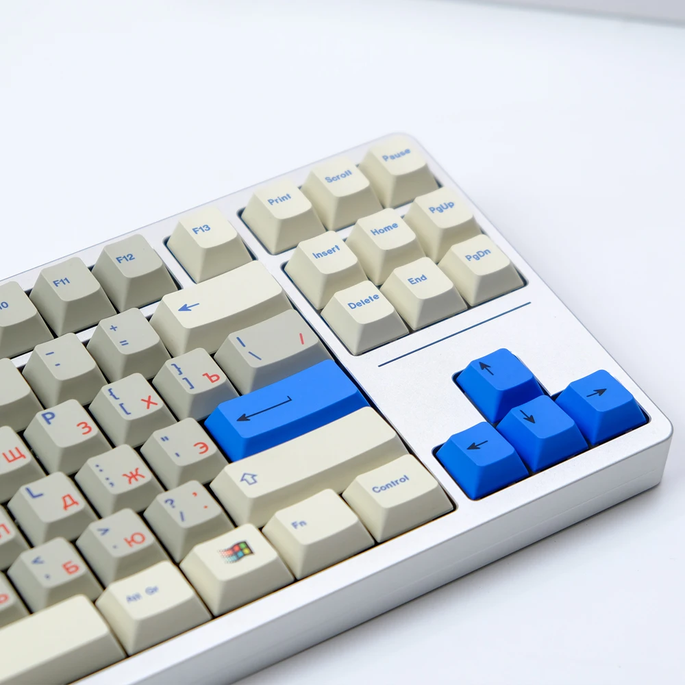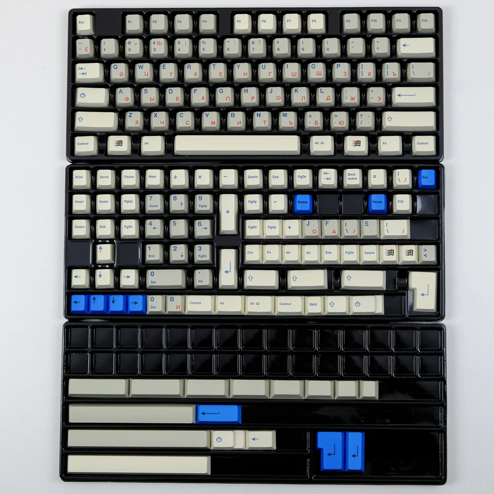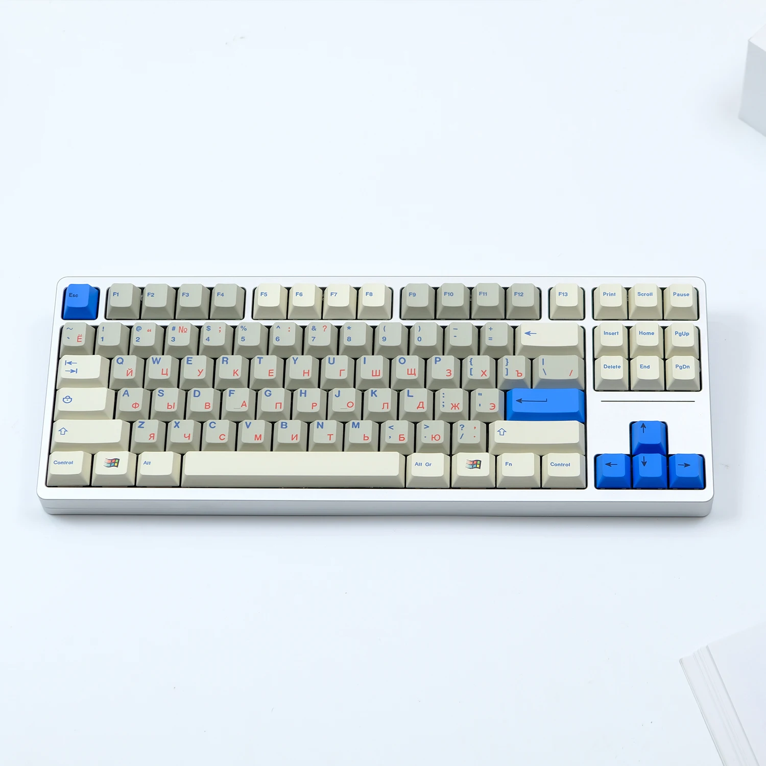 Comprar Teclas Retro grises, blancas, azules, rojas y rusas, perfil de cereza, tinte PBT, sublimación, Teclado mecánico MX Switch, 168 teclas