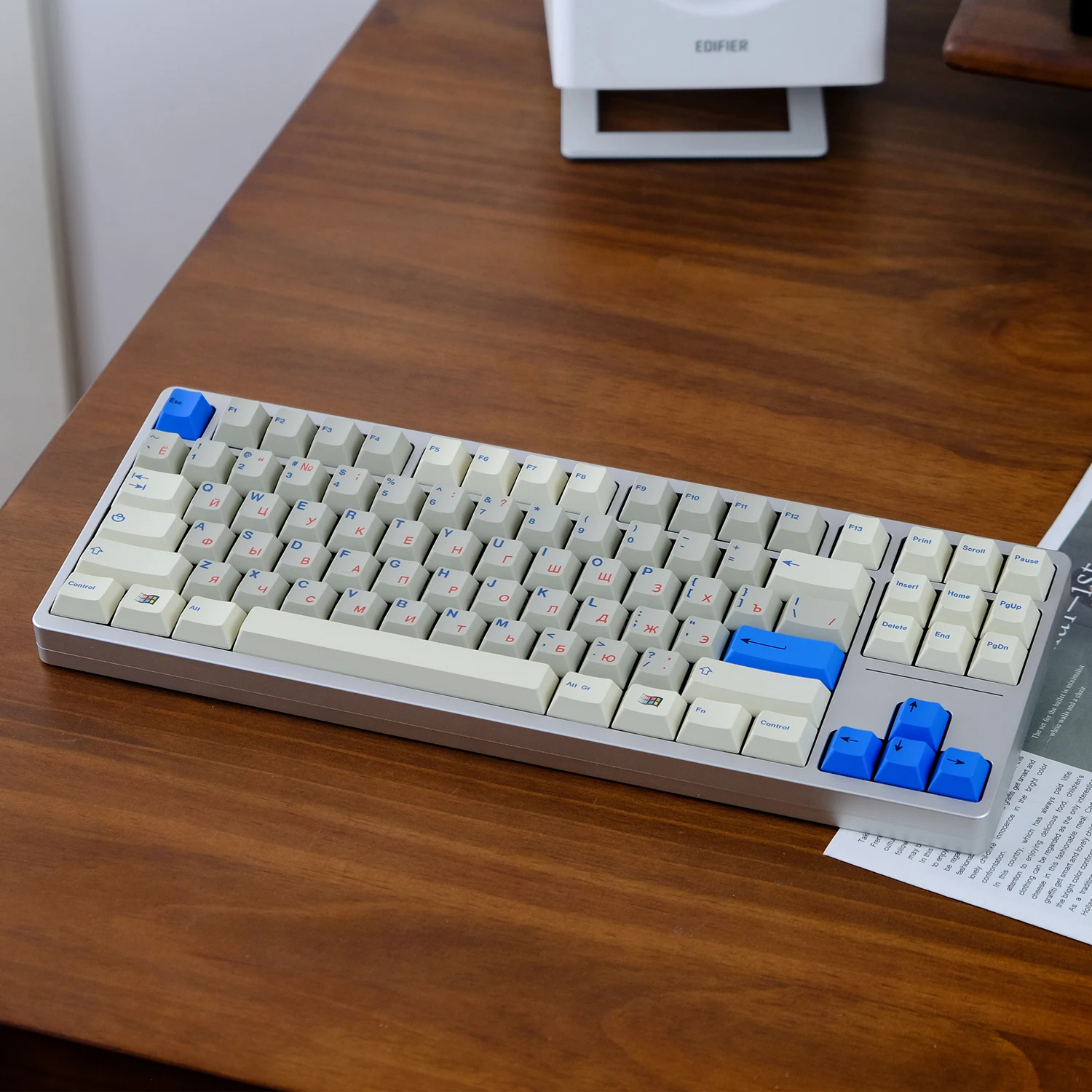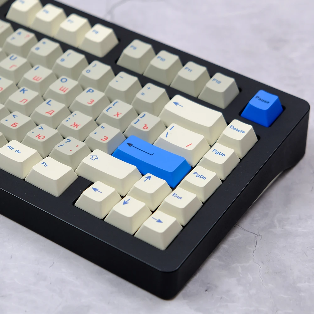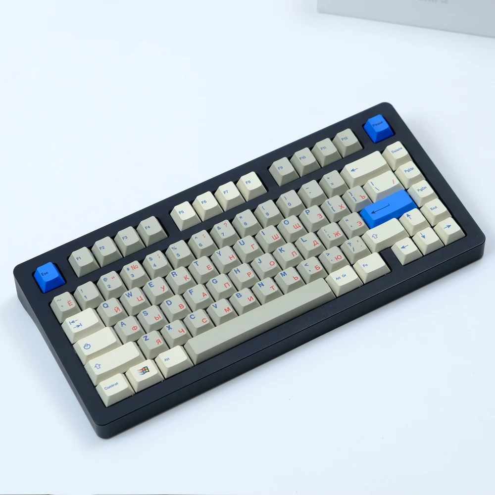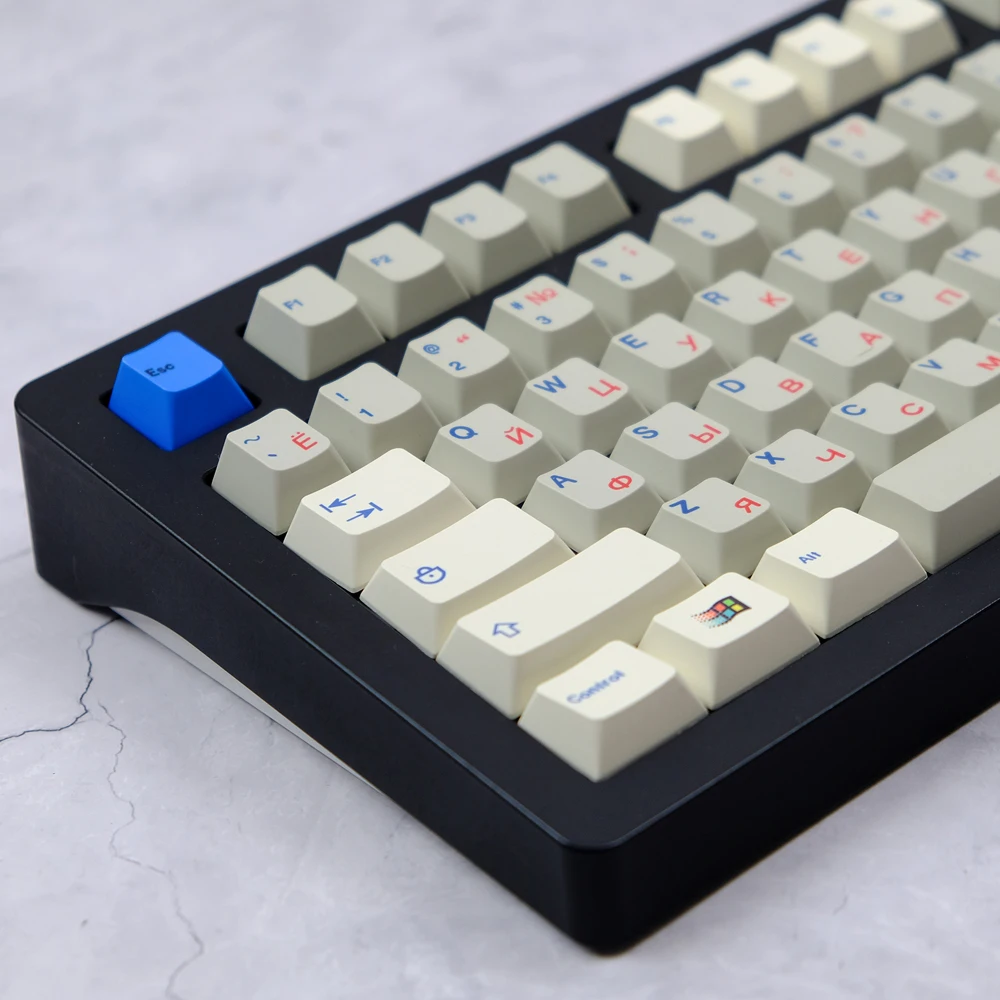 Comprar Teclas Retro grises, blancas, azules, rojas y rusas, perfil de cereza, tinte PBT, sublimación, Teclado mecánico MX Switch, 168 teclas