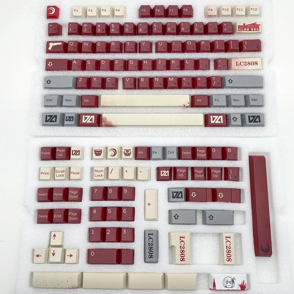 PBT 142 Keys Lycoris Recoil Keycap Original Design Cherry Profile DYE Subbed For GH60 GK61 RK68 RK87 Mechanical & Optical Keyboard