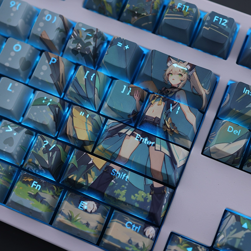 Comprar Teclas retroiluminadas de dibujos animados, juego de 108 teclas, archivo azul, Kirara, PBT, Anime, para teclados ANSI 61, 87, 104, 108