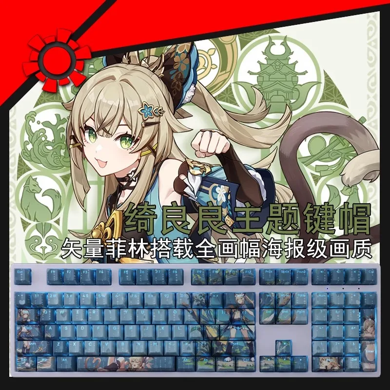 Comprar Teclas retroiluminadas de dibujos animados, juego de 108 teclas, archivo azul, Kirara, PBT, Anime, para teclados ANSI 61, 87, 104, 108