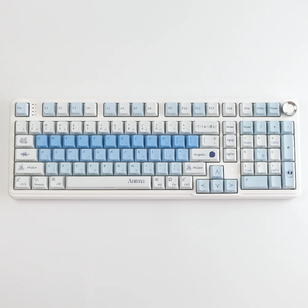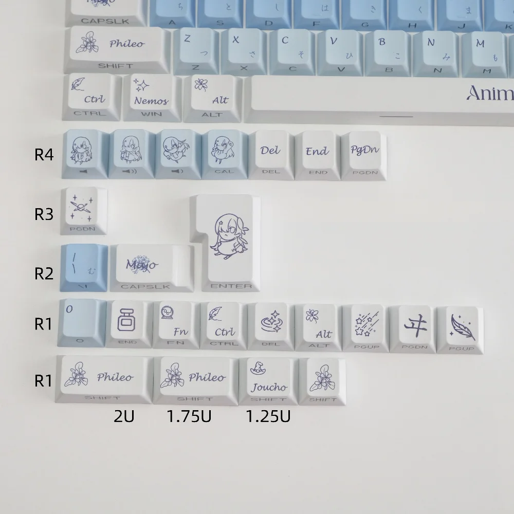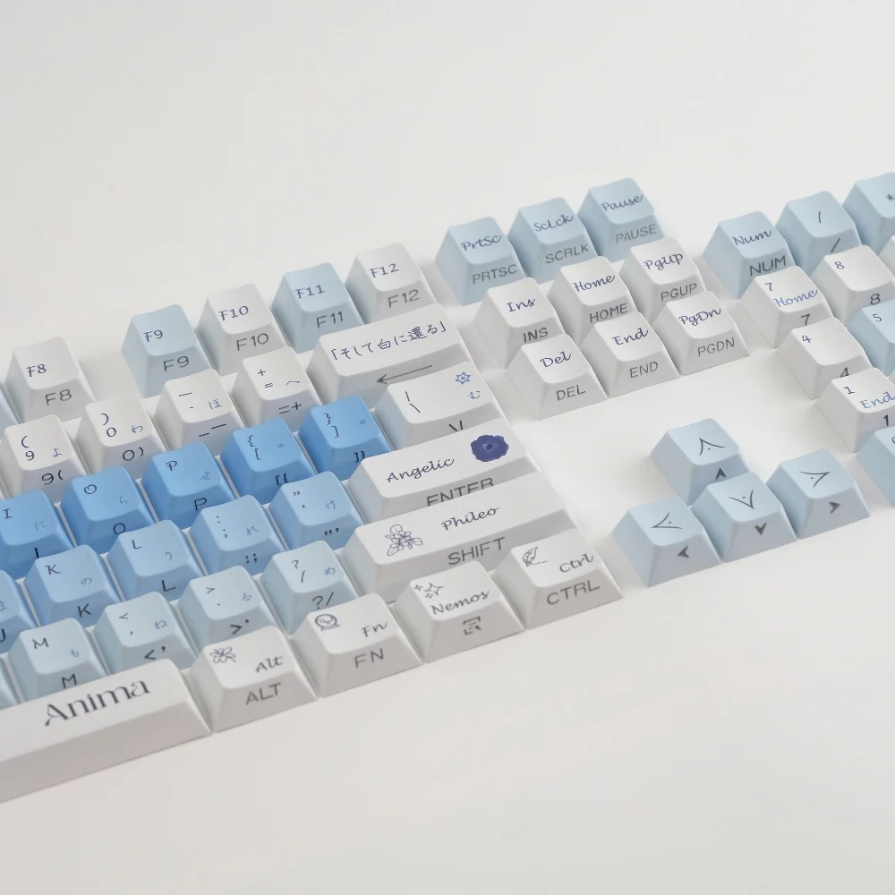 Comprar Teclas retroiluminadas laterales blancas y azules Isekai Joucho Virtual Singer Nemophlia, teclas PBT Dye Subbed, perfil de cereza para teclados
