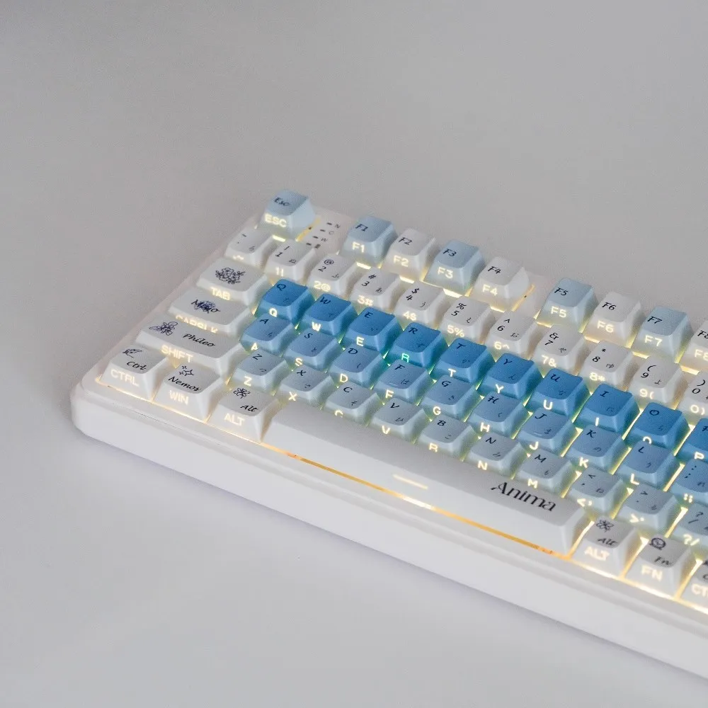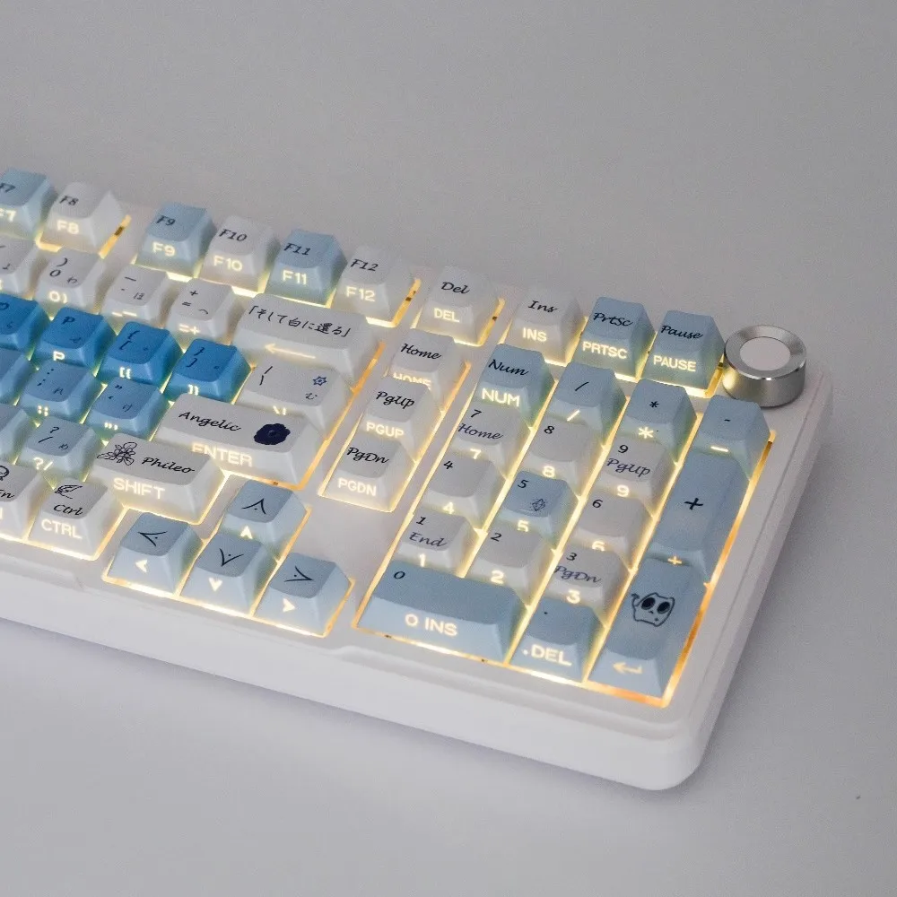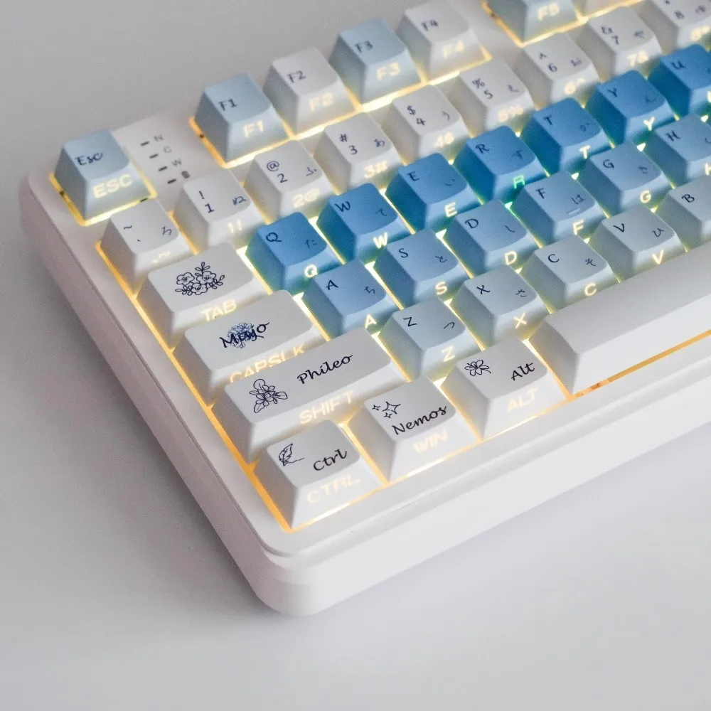 Comprar Teclas retroiluminadas laterales blancas y azules Isekai Joucho Virtual Singer Nemophlia, teclas PBT Dye Subbed, perfil de cereza para teclados