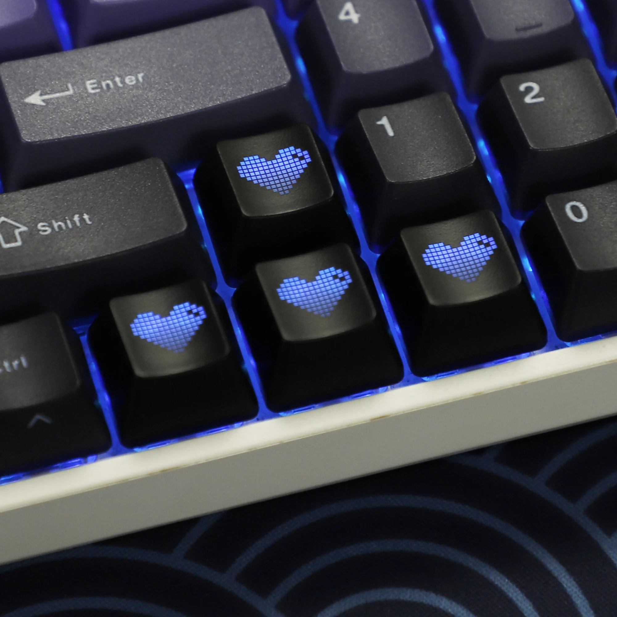 Comprar Teclas retroiluminadas Love Heart de 1,6mm de espesor, teclas brillantes a través de Esc WASD Arrow, perfil OEM para teclado mecánico MX para juegos