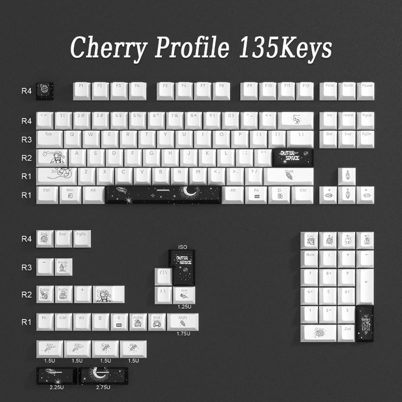 Teclas de 135 teclas compatibles con 61/67/68/75/84/87/96/980/100/104/108 y 2.25u 2.75u 7u Barra espaciadora MxSwitchesANSI Teclado mecánico.
