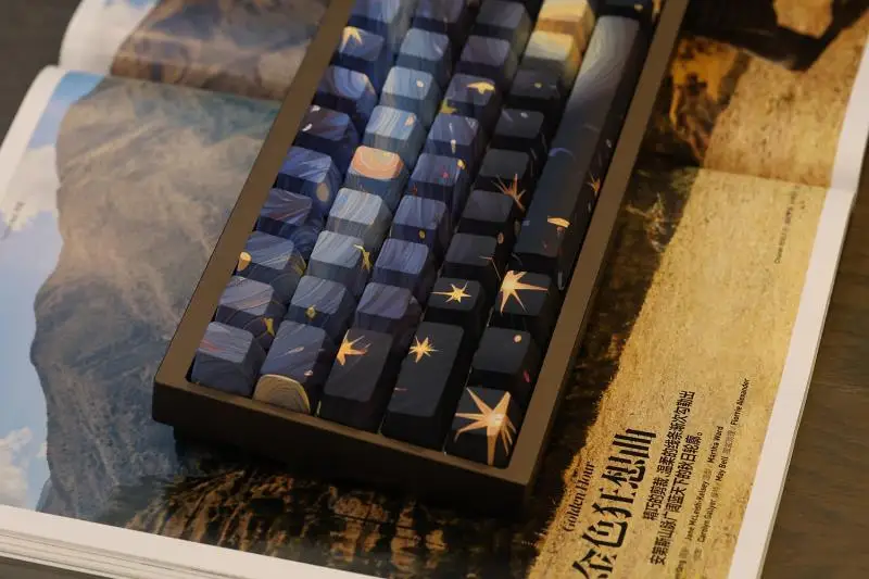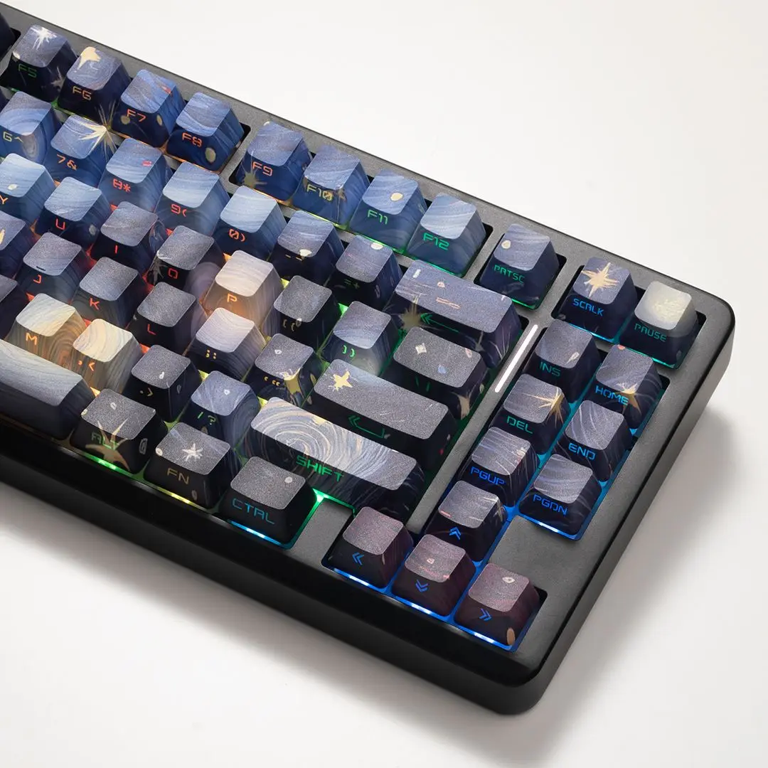 Número de teclas: la versión de impresión lateral de 134 teclas incluye cambio 1,75U 2U, 1,5U alt ctrl, barra espacial 6.25U 7U, es compatible con 61、64、68、71、84、87、96、980、104、108, etc. teclado mecánico de diseño con interruptores MX