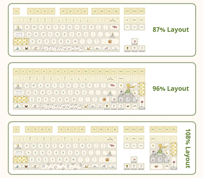 Aplicable a:Teclado mecánico de 61/64/68/84/87/96/98/100/104/108 teclas (puede haber desviaciones según los estándares nacionales, comuníquese conmigo lo antes posible si hay desviaciones)