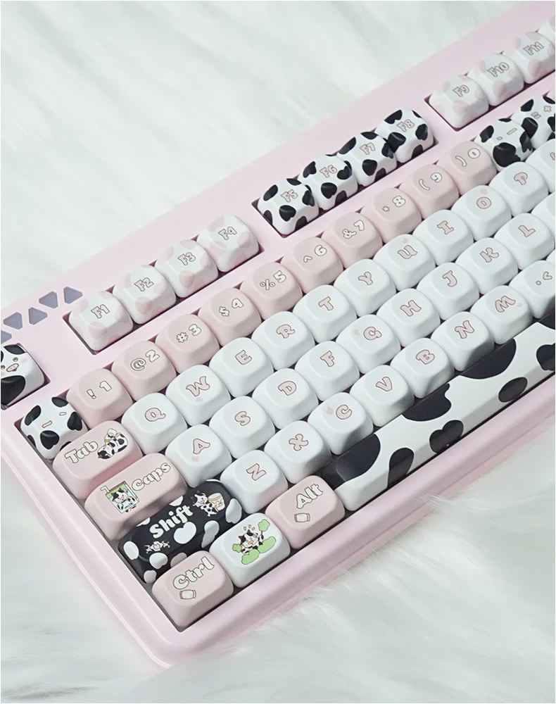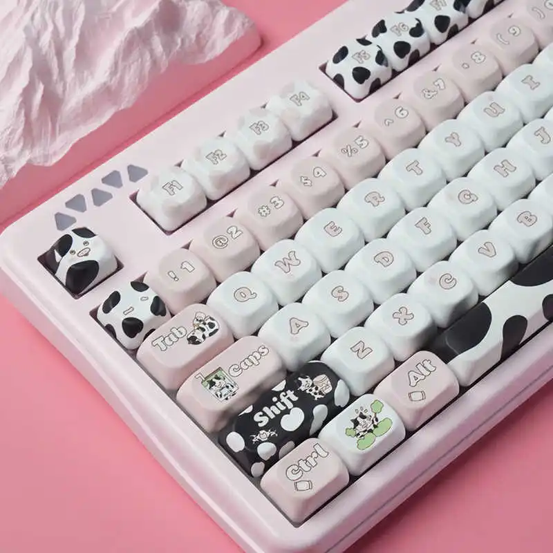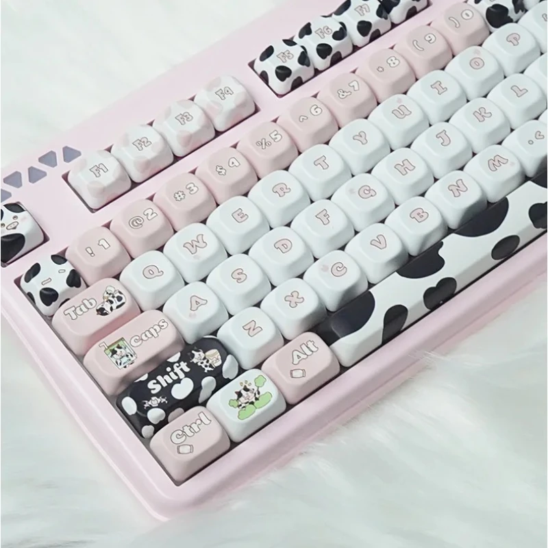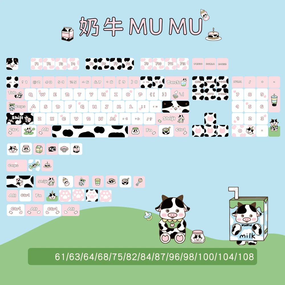 Comprar Teclas rosas bonitas de vaca Mumu, perfil MOA, sublimación térmica PBT, teclas de pasto de vaca lechera para teclado mecánico de eje transversal