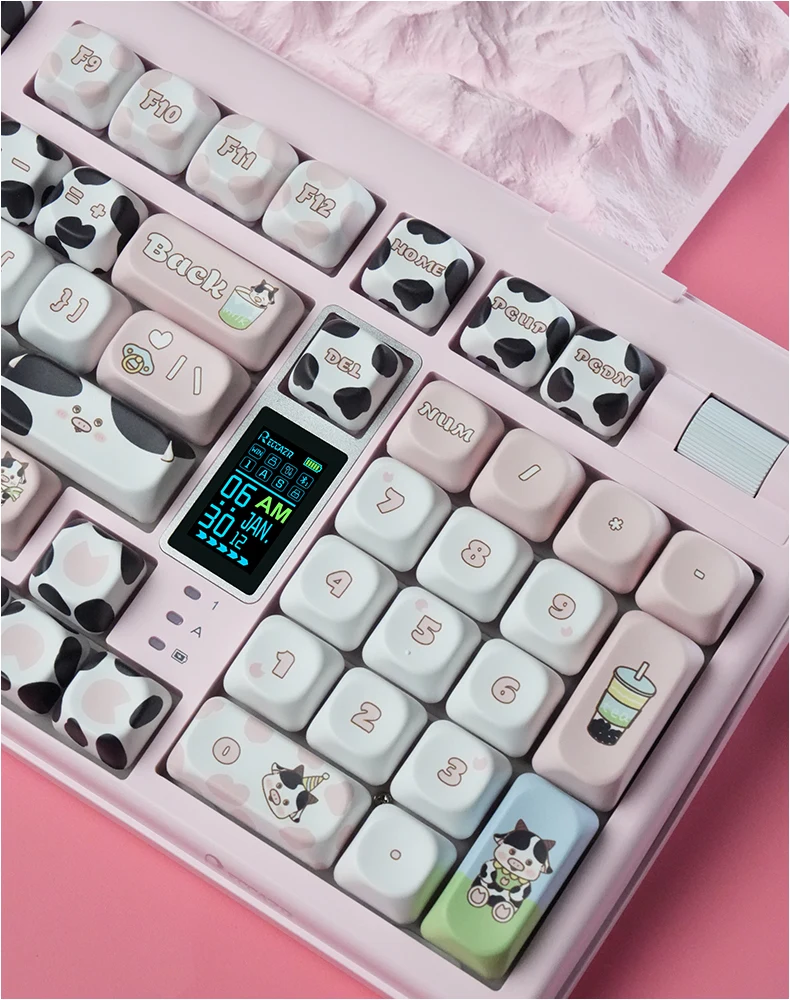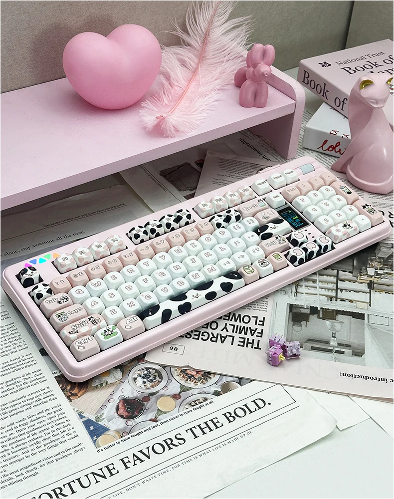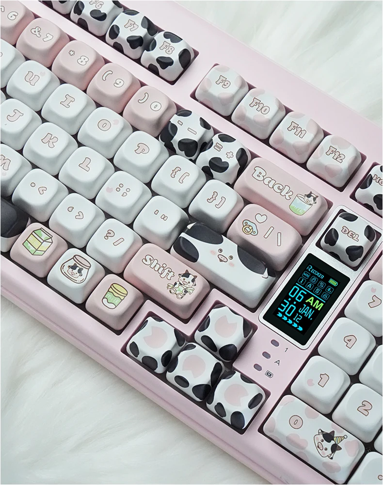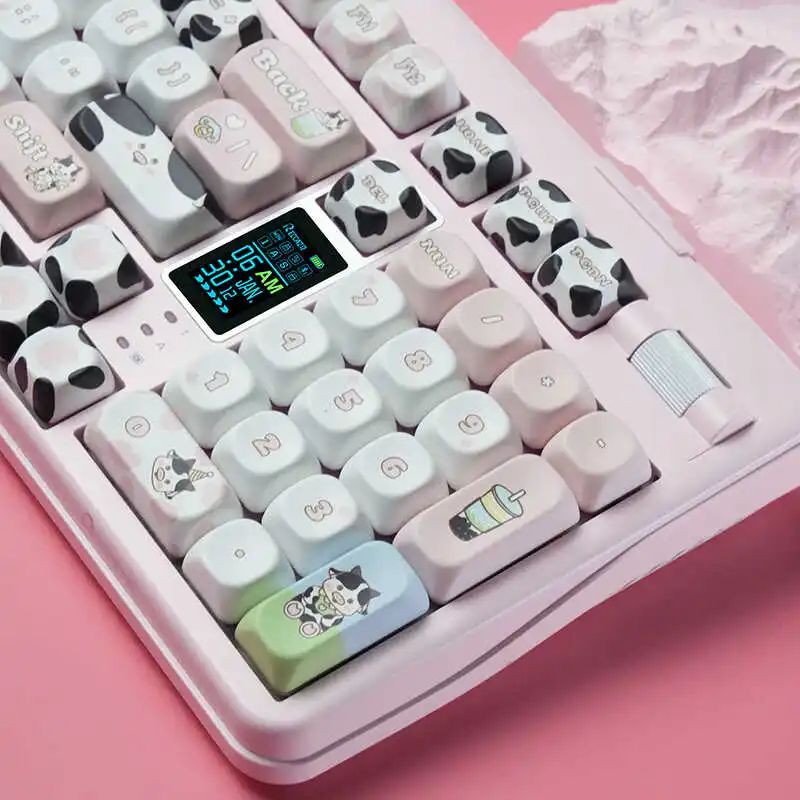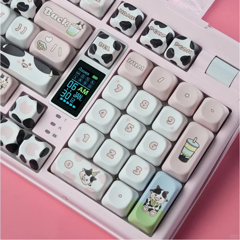 Comprar Teclas rosas bonitas de vaca Mumu, perfil MOA, sublimación térmica PBT, teclas de pasto de vaca lechera para teclado mecánico de eje transversal