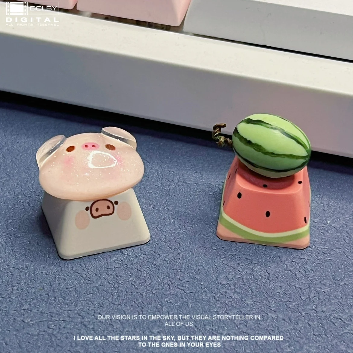 Comprar Teclas de sandía de fruta DIY, teclas de juego de eje cruzado, Teclado mecánico ESC, decoración rosa, regalo para niña