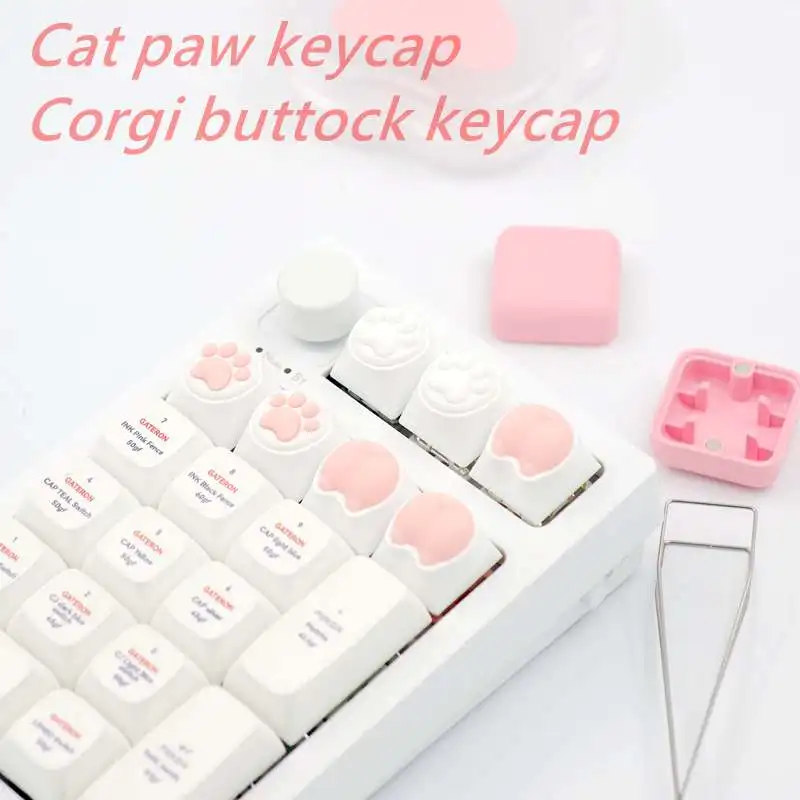 Comprar Teclas de silicona suave para teclado mecánico Cherry Mx Switch, teclas de animales ABS, patas de gato Corgi, 1 pieza
