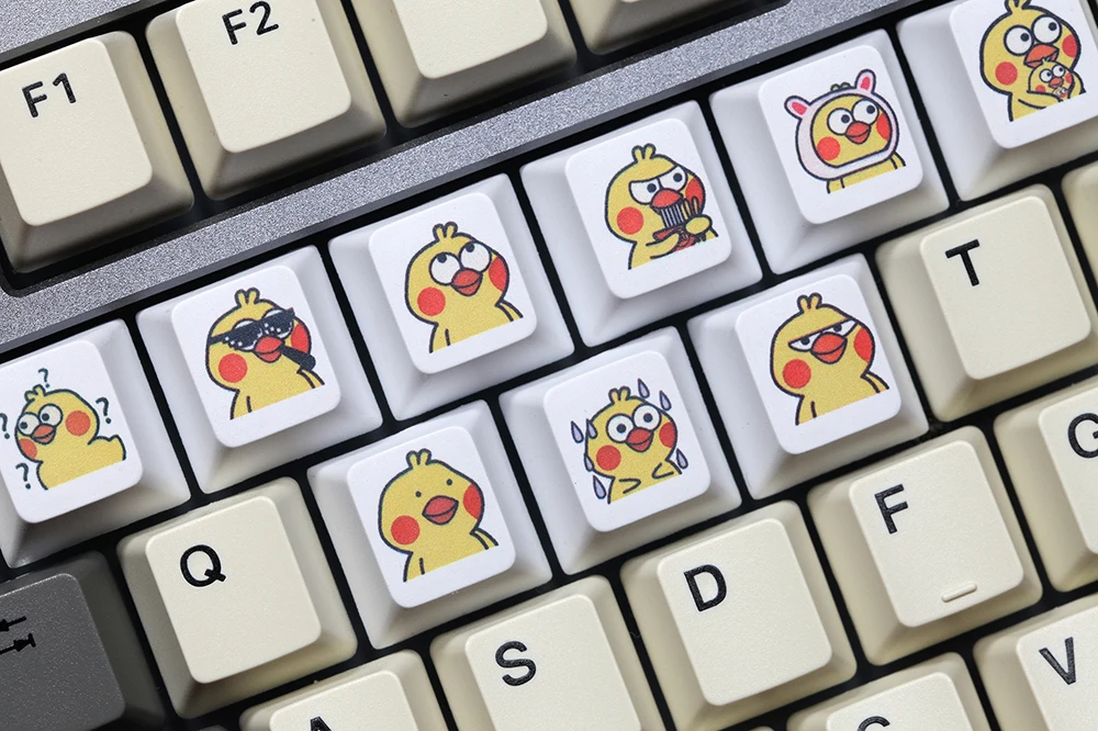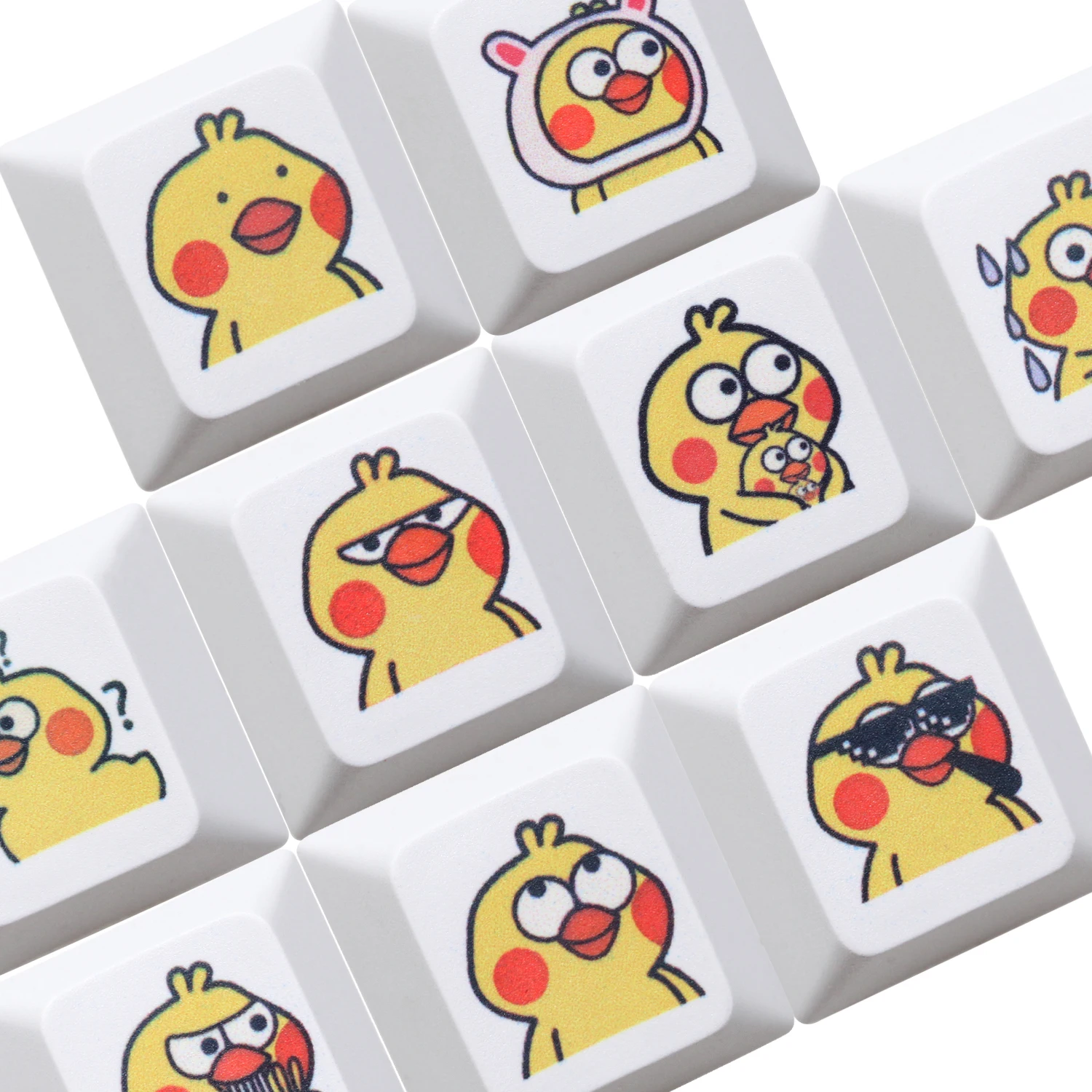 Comprar Teclas de subcama para teclado mecánico mx stem, teclas divertidas de color amarillo, pequeño pollo, loro, estado de ánimo, Meme, expresión, lindo