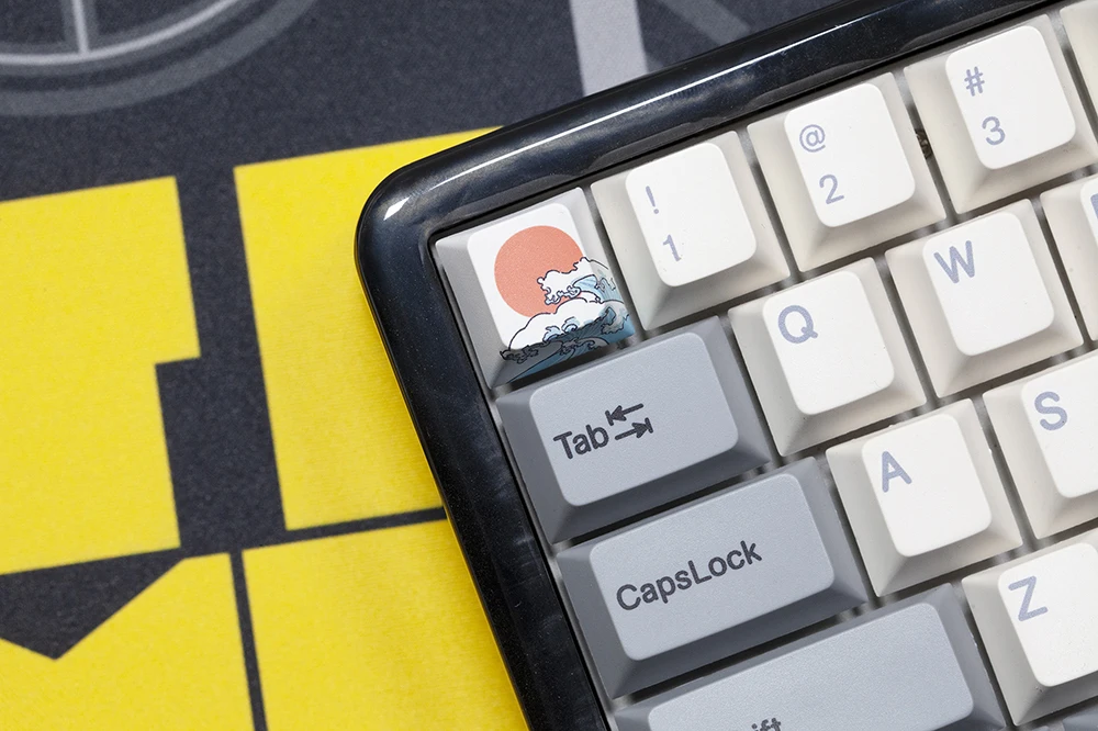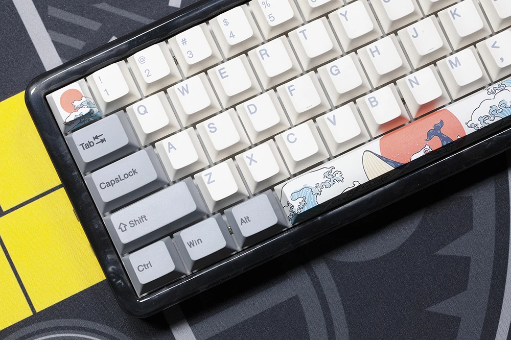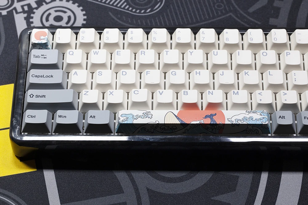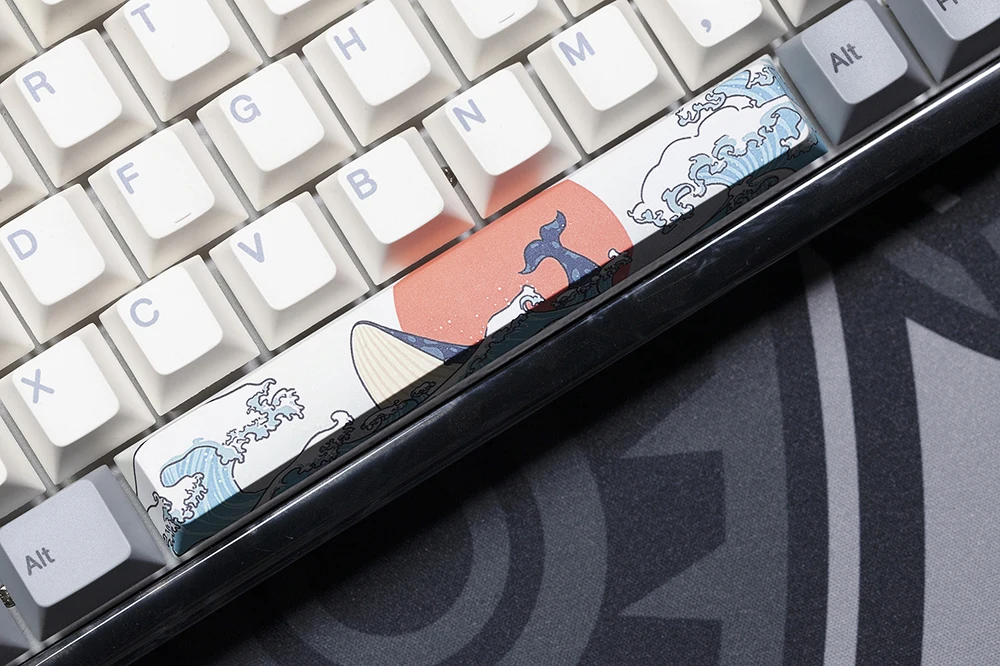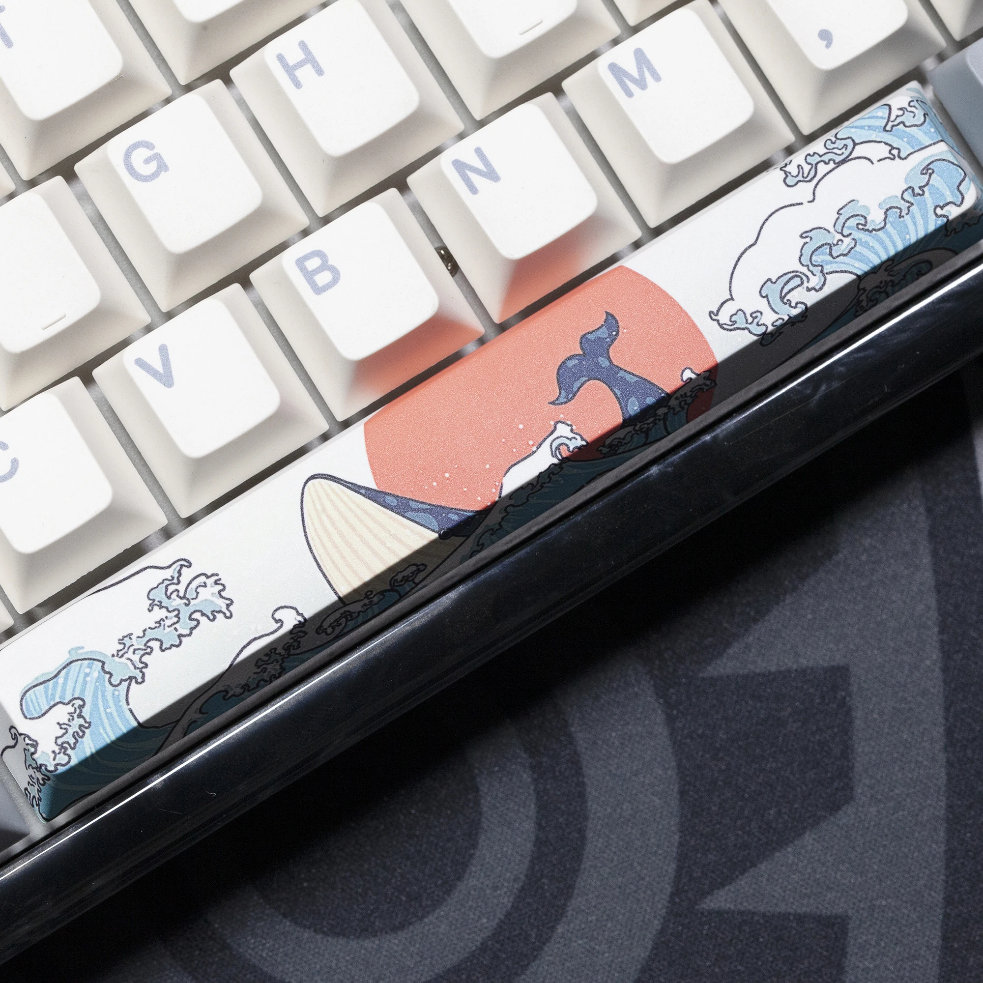 Comprar Teclas de subcama de tinte allover, Barra espaciadora de onda japonesa, ballena y sol ESC, 6.25u, pbt para teclado mecánico, perfil de cereza, novedad