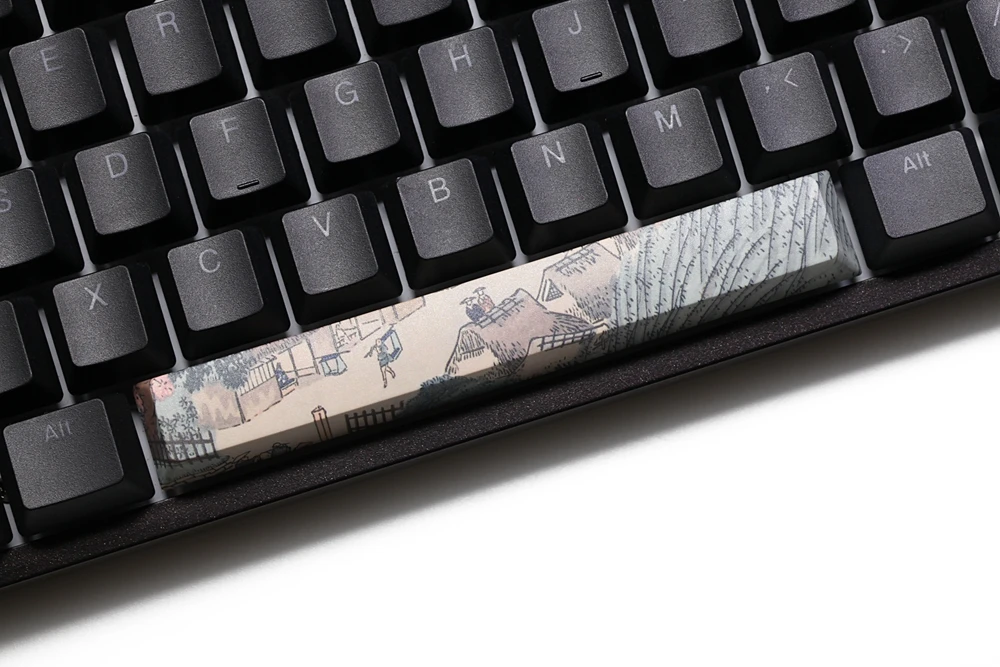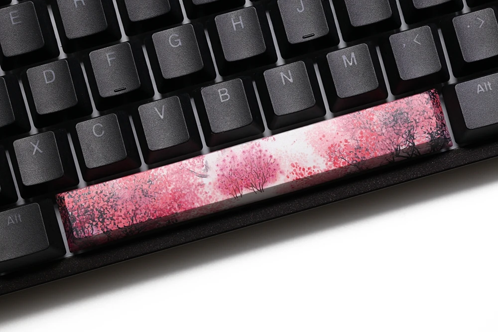 Comprar Teclas de subcama de tinte allover, teclas de barra espaciadora pbt, Teclado mecánico personalizado, flor de ciruelo, muñeco de nieve, pintura de tinta, matriz de ópera, novedad