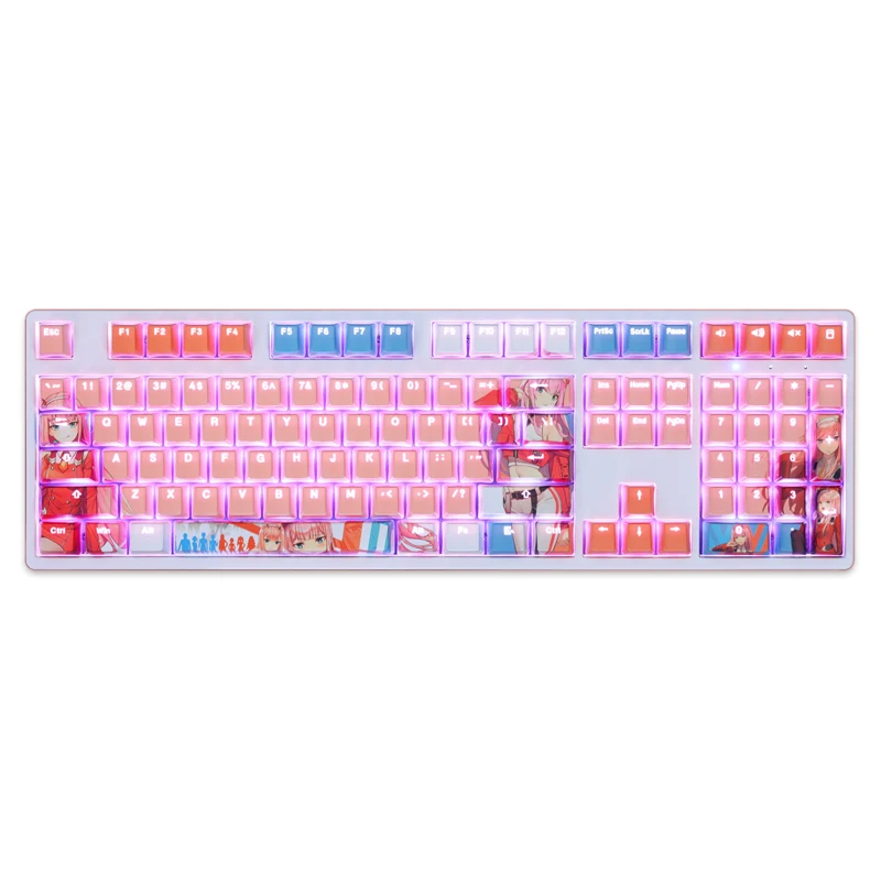 Comprar Teclas subcama de tinte PBT de 108 teclas, teclas para juegos de Anime de dibujos animados bidimensionales, teclas retroiluminadas de perfil OEM para Darling in the Franxx