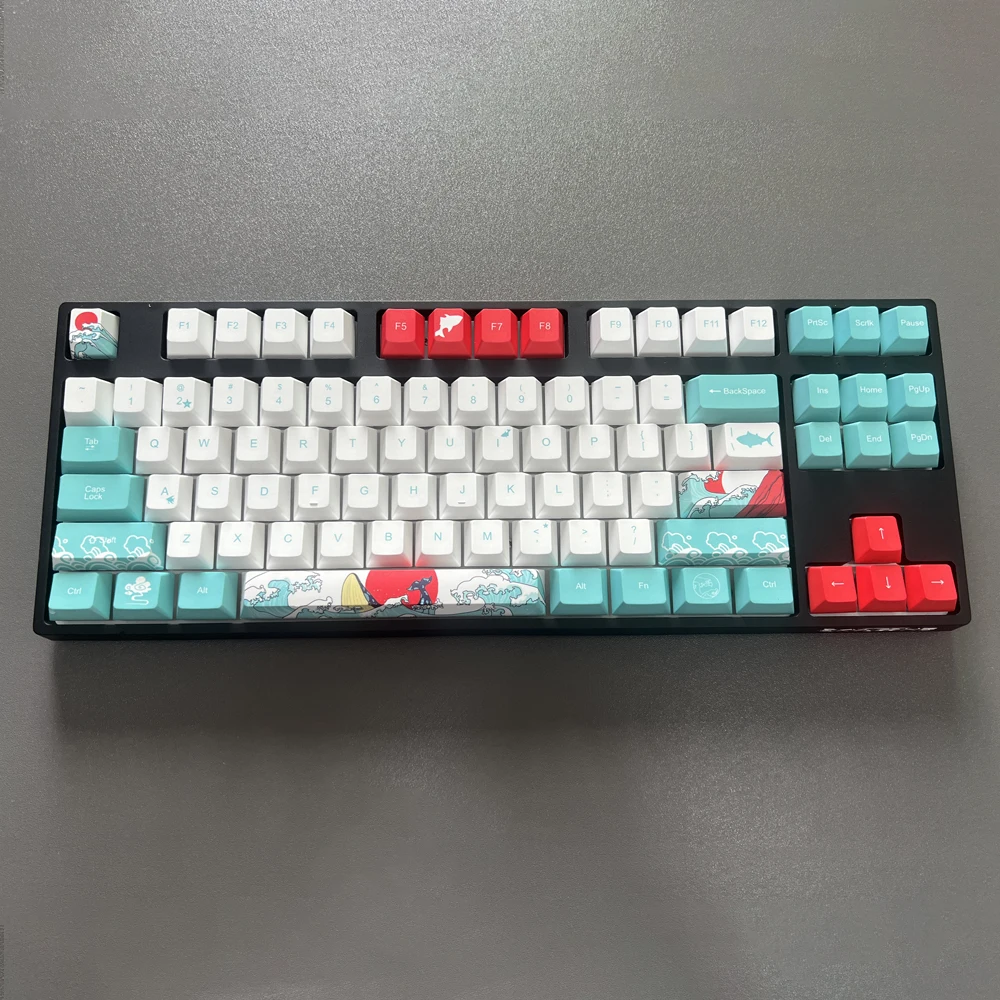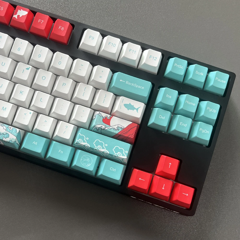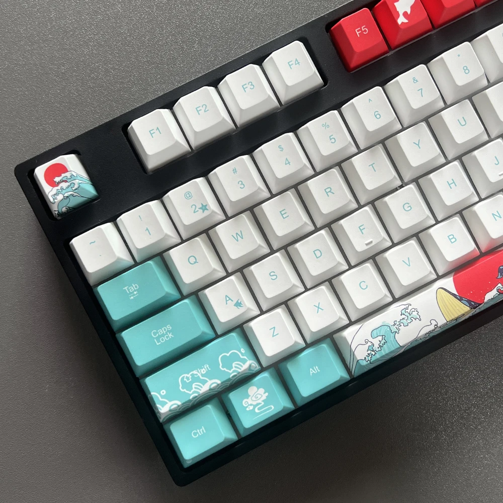 Comprar Teclas de sublimación para teclado mecánico MX Switch, teclas de perfil de cereza, Coral, mar, PBT, 6,25u, 7U, ISO Enter espacial, 135 teclas